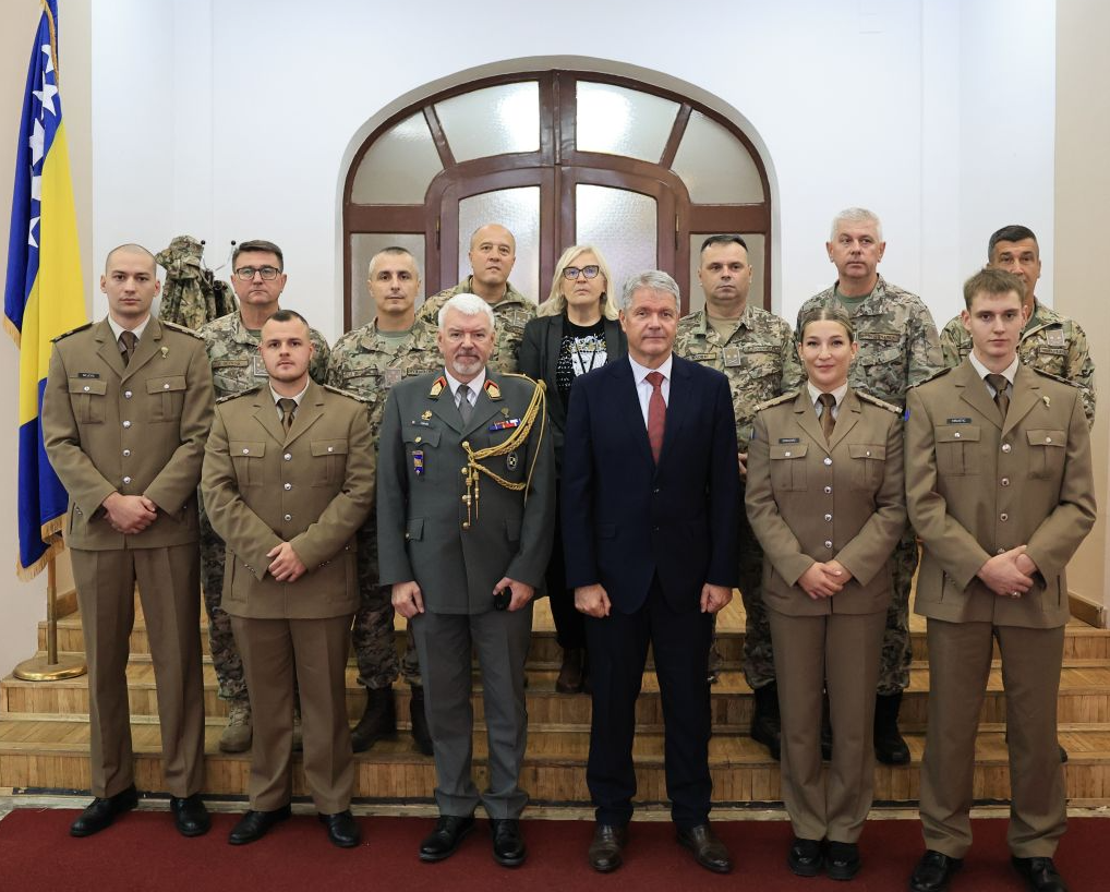 Četiri kadeta, koja su 26. septembra 2025.godine, završila petogodišnje školovanje na Terezijanskoj vojnoj akademiji Oružanih snaga Republike Austrije, potpisala su danas ugovore o prijemu u profesionalnu vojnu službu u OS BiH početnom činu potporučnika.
