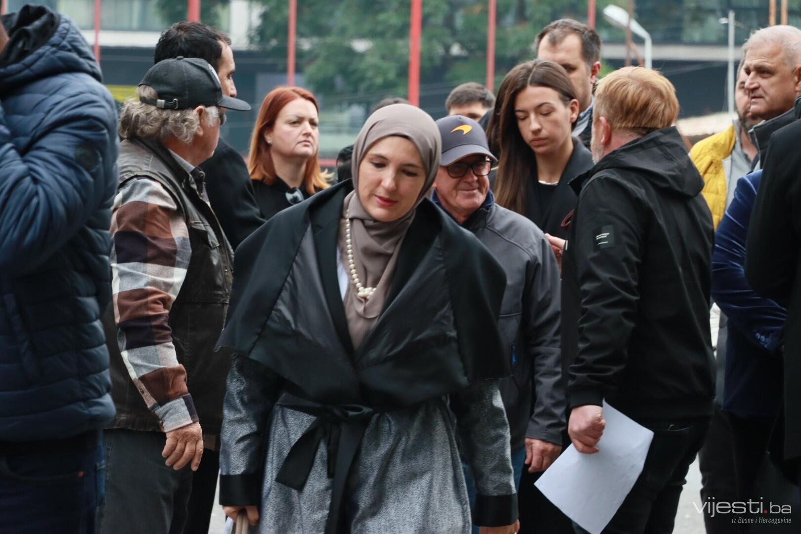 Ispred Narodnog pozorišta u Sarajevu stigao je i Muhamed Fazlagić Fazla. Stigla je i Indira Levak, pjevačica.