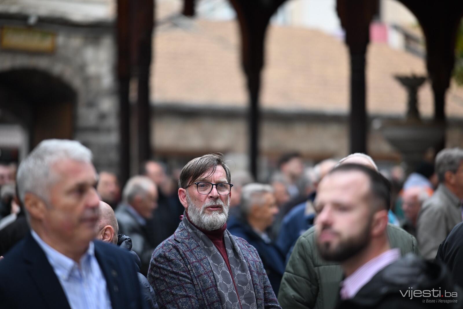 Ljudi se okupljaju ispred Begove džamije uoči dženaze Halidu Bešliću
