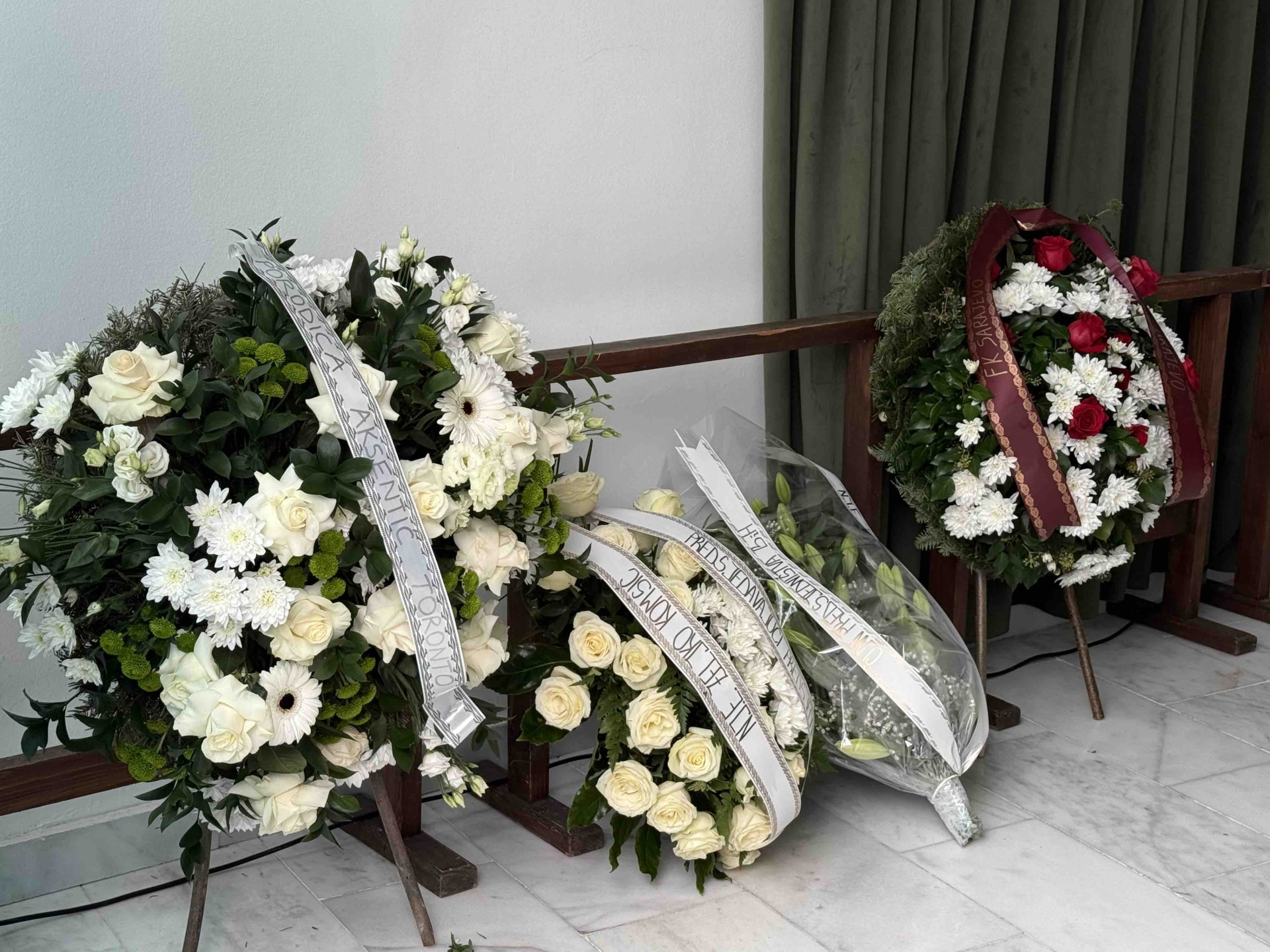 Vijenci cvijeća kao znak počasti Halidu od članova Predsjedništva BiH Denisa Bećirovića i Željka Komšića, kao i vijenac od porodice Aksentić, koji je stigao iz Toronta, spremni su na Barama.