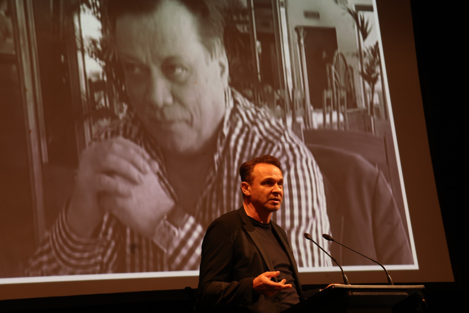Glumac Enis Bešlagić izazvao je snažan aplauz kada je govorio o zajedničkoj akciji u Halidovu čast, kojom su se ljudi širom regije i dijaspore spontano okupili i pjevali njegove pjesme.