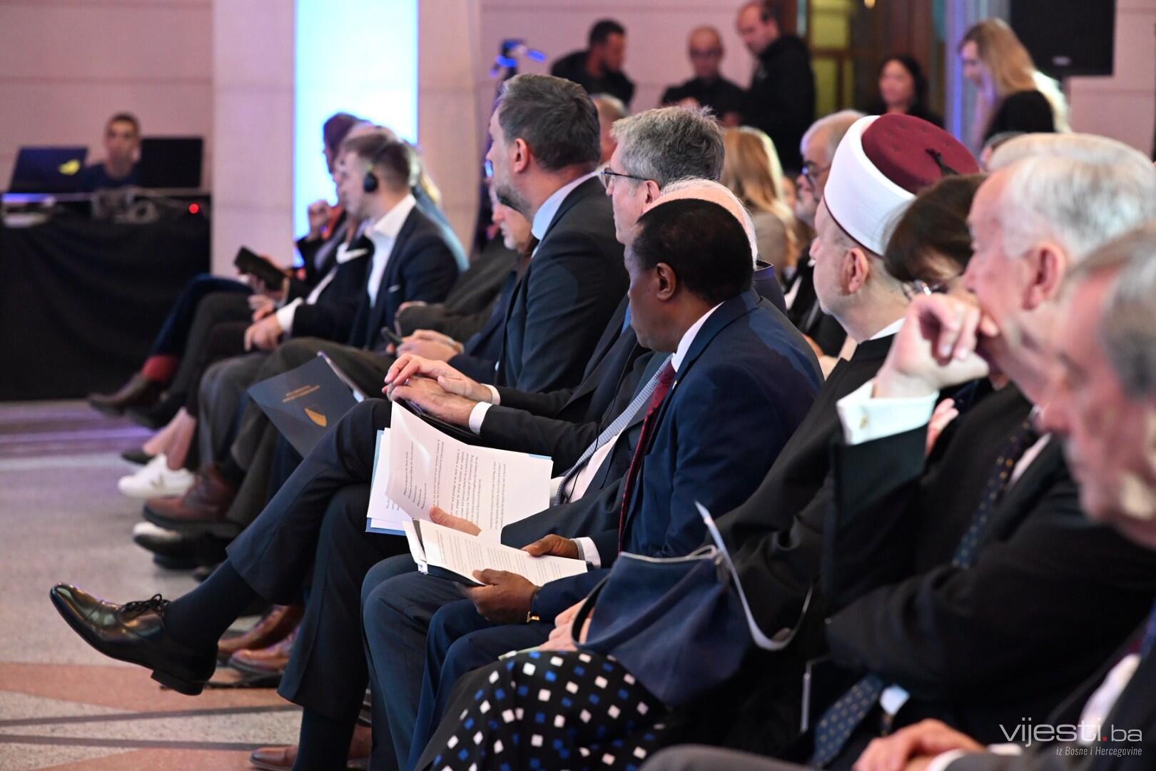 Završni događaj konferencije u sarajevskoj Vijećnici okupio je učesnike iz različitih dijelova svijeta, uključujući visoke zvaničnike, vjerske lidere i predstavnike međunarodnih organizacija. Taj međunarodni skup, odnosno globalnu inicijativu organizirali su Savez civilizacija Ujedinjenih nacija (UNAOC), Religije za mir (RfP), u saradnji sa Ministarstvom vanjskih poslova BiH, Gradom Sarajevo i Međureligijskim vijećem u BiH, uz podršku Ureda rezidentne koordinatorice UN-a BiH.
