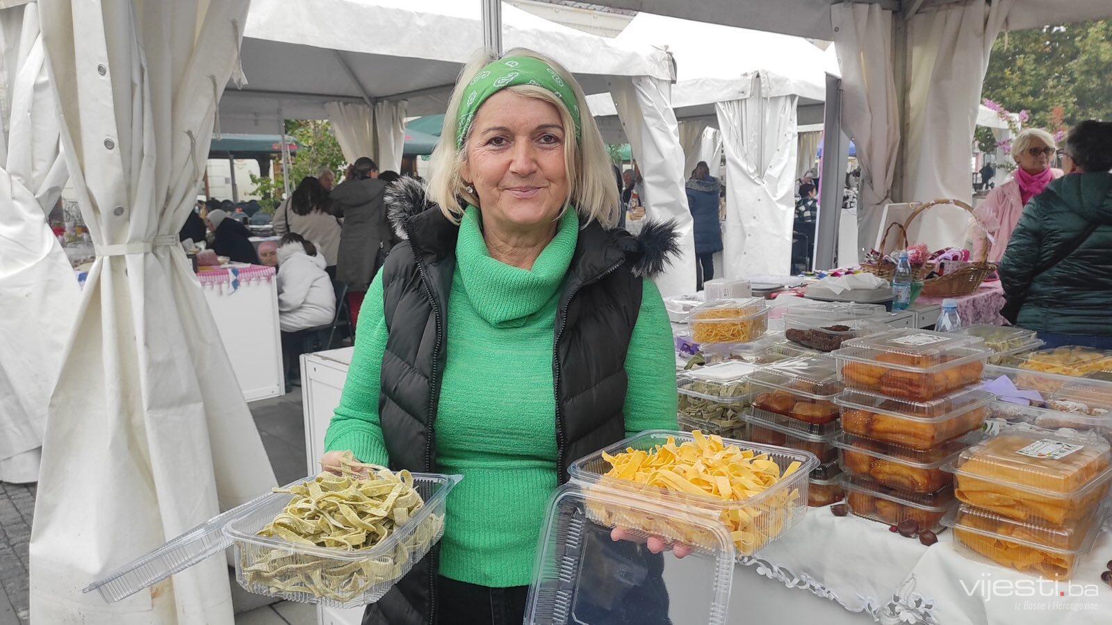 "Mi proizvodimo svašta, ali na sajmu smo odlučile da se predstavimo sa tjesteninom. Od svoje pšenice i jaja pravimo domaće kore za pitu, zatim, rezance, mi kažemo pilav, tarhanu, razne kolače"- pokazuje proizvode Suvada Selimović, predsjednica Udruženja "Anima" iz Zvornika. istovremeno, podsjeća na važnost sela i domaće hrane za državu.