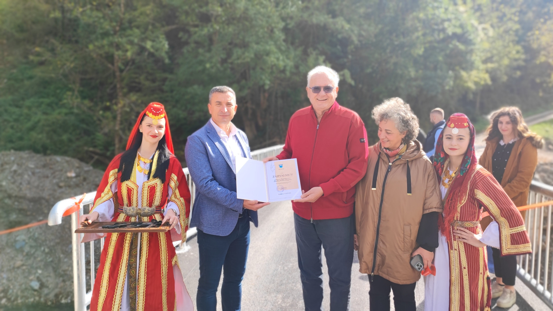 - Vodeći se motom "Dobrota je cilj života", zahvalni smo svima koji su nam pružili i pružaju podršku tokom oporavka od poplava. U ime građana Konjica i Gradske uprave Konjic zahvaljujem gospodinu Faruku Širbegoviću, koji se od samog početka stavio na raspolaganje za pomoć. Željeli smo uz prisustvo gospodina Širbegovića simbolično otvoriti most, uručiti zahvalnicu i zajednički obići teren, što smo i učinili. Ovakve geste nam pokazuju veliko srce Bosanaca i Hercegovaca gdje god živjeli - kazao je gradonačelnik Ćatić.
