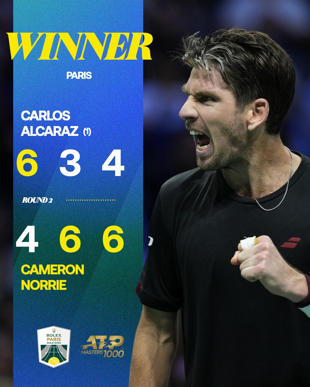 Alcaraz je bio slobodan u prvoj rundi, a u drugoj je od njega bolji bio Cameron Norrie poslije preokreta – 4:6, 6:3, 6:4.