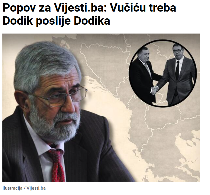 Vučićev povjerljivi saradnik Ratko Dmitrović čak ide dotle da tvrdi kako je „rezim u Banjoj Luci“ garantovao SAD-u prethodno blokirani NATO pristup Bosne", piše FR, pa citira dijelove intervjua Popova za Vijesti.ba.