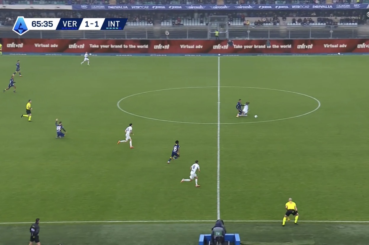 Yann Bisseck, napravio je faul kao posljednji igrač odbrane, čime je spriječio očiglednu priliku za gol Verone.