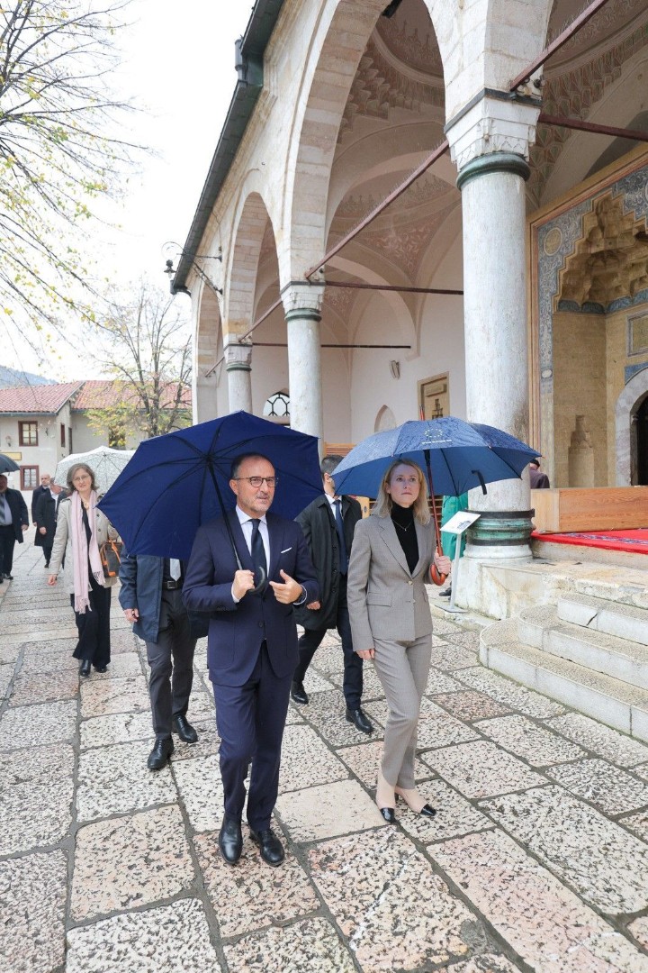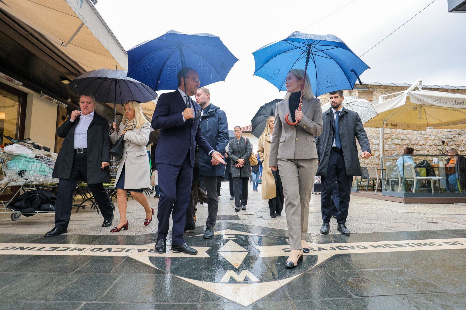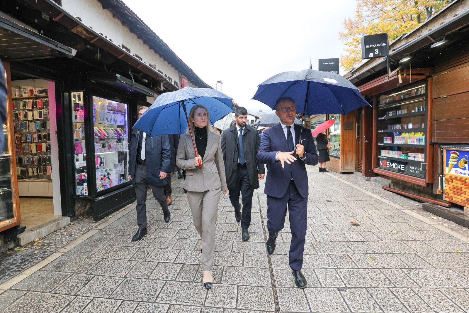 Kallas i Soreca sa kišobranima prošetali Baščaršijom