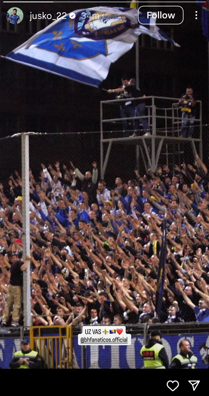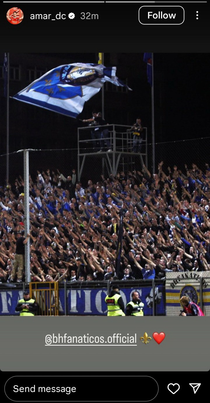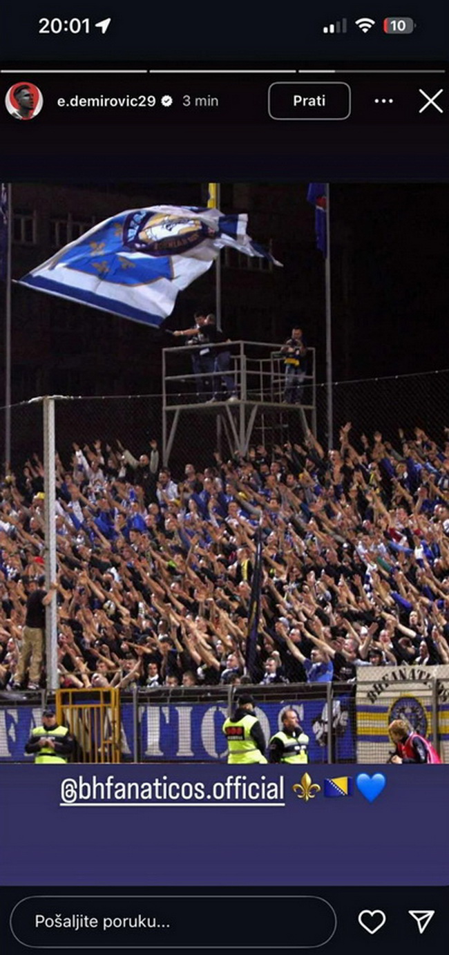 Demirović je putem svog profila na Instagramu jasno dao podršku BH Fanaticosima i među prvima poslao jasnu poruku "na čijoj je strani".