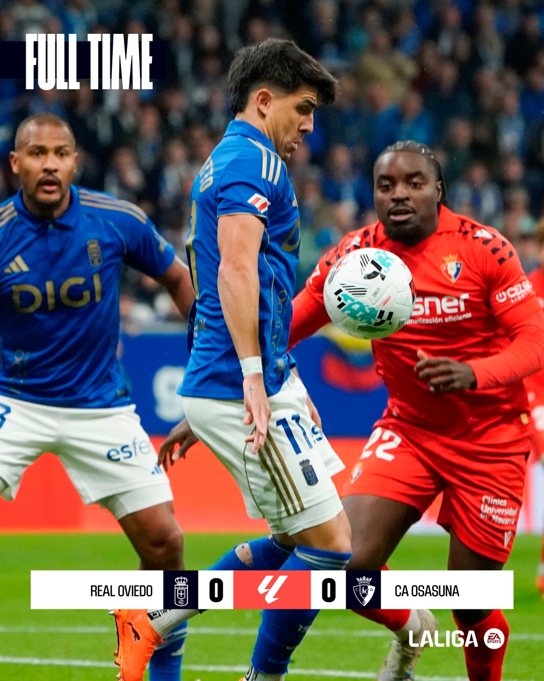 U posljednjem susretu 11. kola španskog nogometnog prvenstva između Real Ovieda i Osasune nije bilo golova. Bila je to napadački skromna predstava.