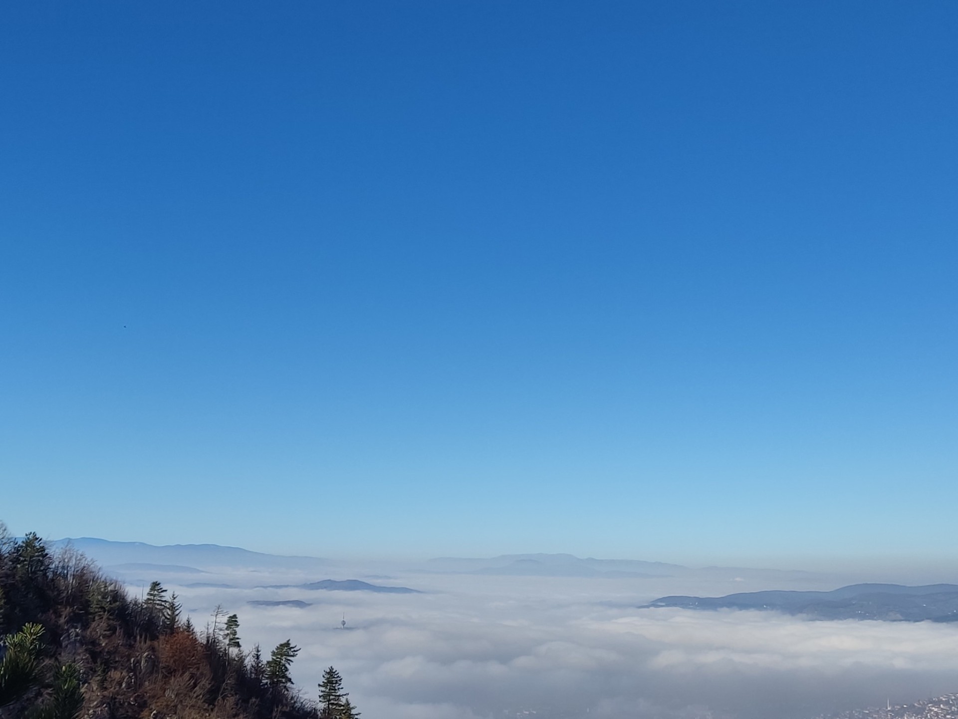 Dok se grad bori sa zagađenjem i gustim slojem smoga, oni koji su jutros odlučili „pobjeći“ na Trebević mogli su uživati u pogledu koji oduzima dah.