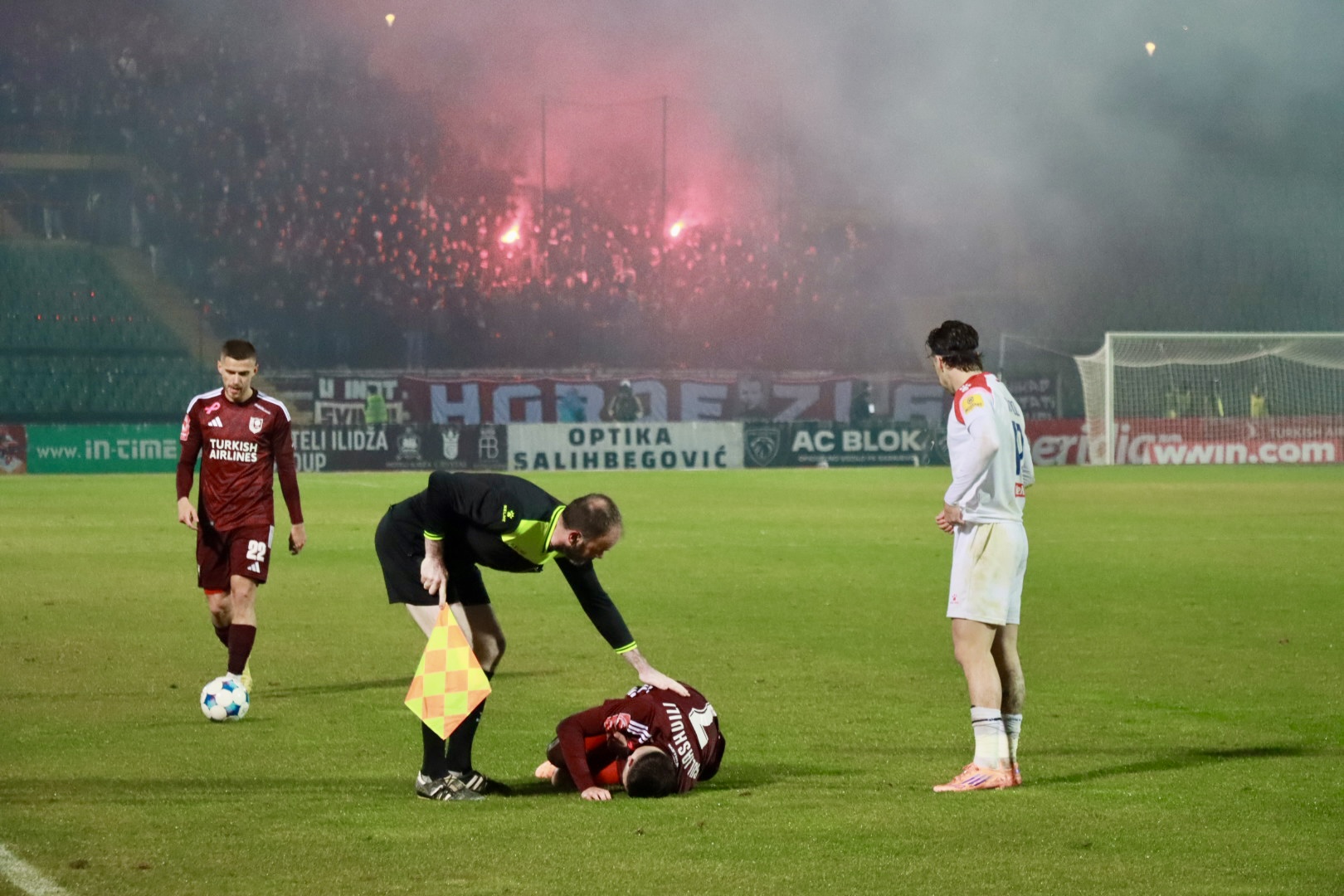 64 - Prekid sada zbog bakljade domaćih navijača.