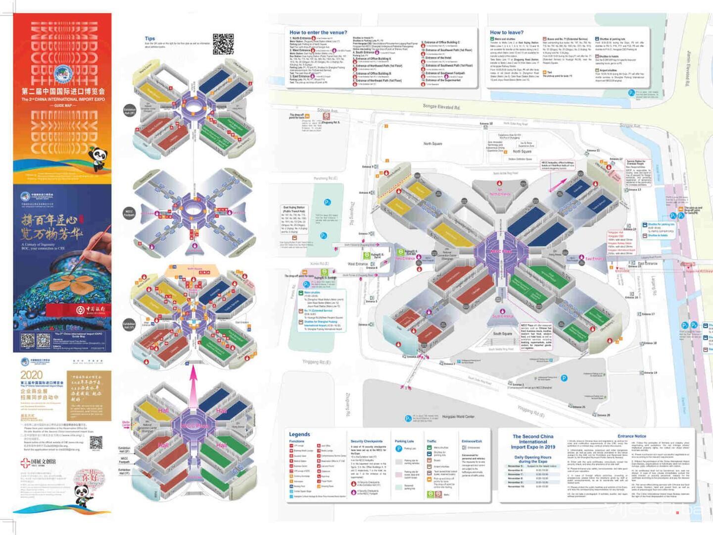 Sa ukupnom građevinskom površinom od gotovo 1,5 miliona m². objekti u NECC-u (Šangaj) uključuju izložbene hale, trgovački centar, poslovne zgrade i hotel. Ove četiri cjeline povezane su uzdignutim Izložbenim bulevarom visine 8 metara, što omogućava posjetiocima lako kretanje između različitih funkcionalnih područja.