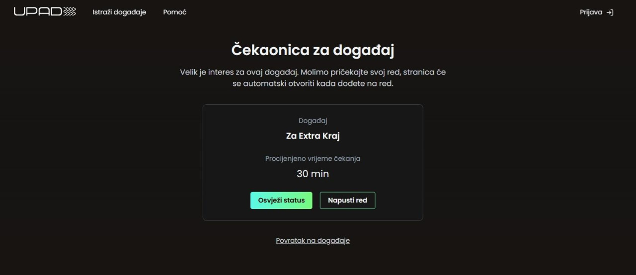 "Velik je interes za ovaj događaj. Molimo pričekajte svoj red, stranica će se automatski otvoriti kada dođete na red."