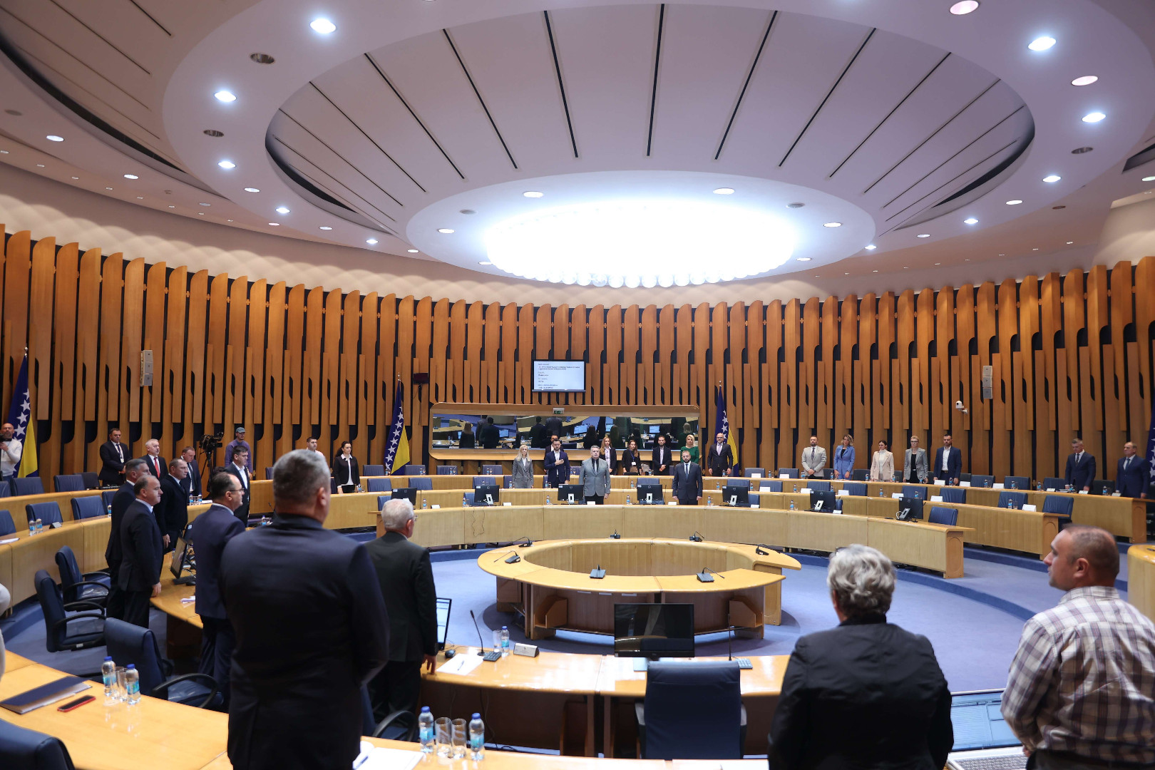 - Nakon pauze, sjednici prisustvuje pet delegata iz reda bošnjačkog naroda, dva iz reda hrvatskog i jedan delegat iz reda srpskog naroda. Konstatujem da se nisu stekli uslovi za održavanje sjednice te je prekidam – kazao je predsjedavajući Doma naroda Krmal Ademović.