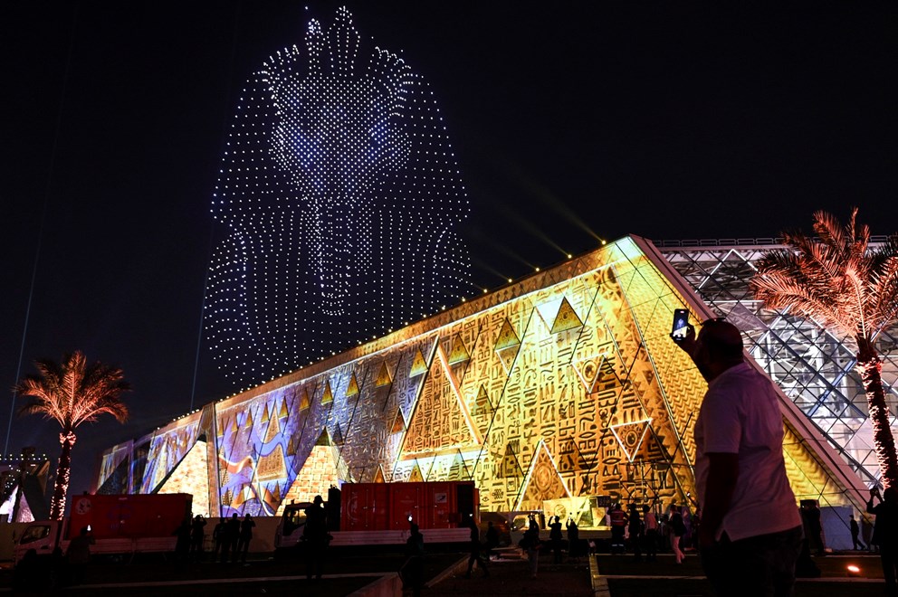Muzej, koji se nalazi blizu piramida, otvoren je 1. novembra raskošnom ceremonijom kojoj su prisustvovali deseci svjetskih lidera i predstavnika medija. Glasnogovornik je rekao da u prosjeku svaki dan muzej posjeti oko 19.000 ljudi kako bi vidjeli zbirku, koja uključuje artefakte iz grobnice kralja Tutankamona i 42 metra dug solarni brod kralja Keopsa (Kufua). Ove brojke premašile su očekivanja egipatskih vlasti.