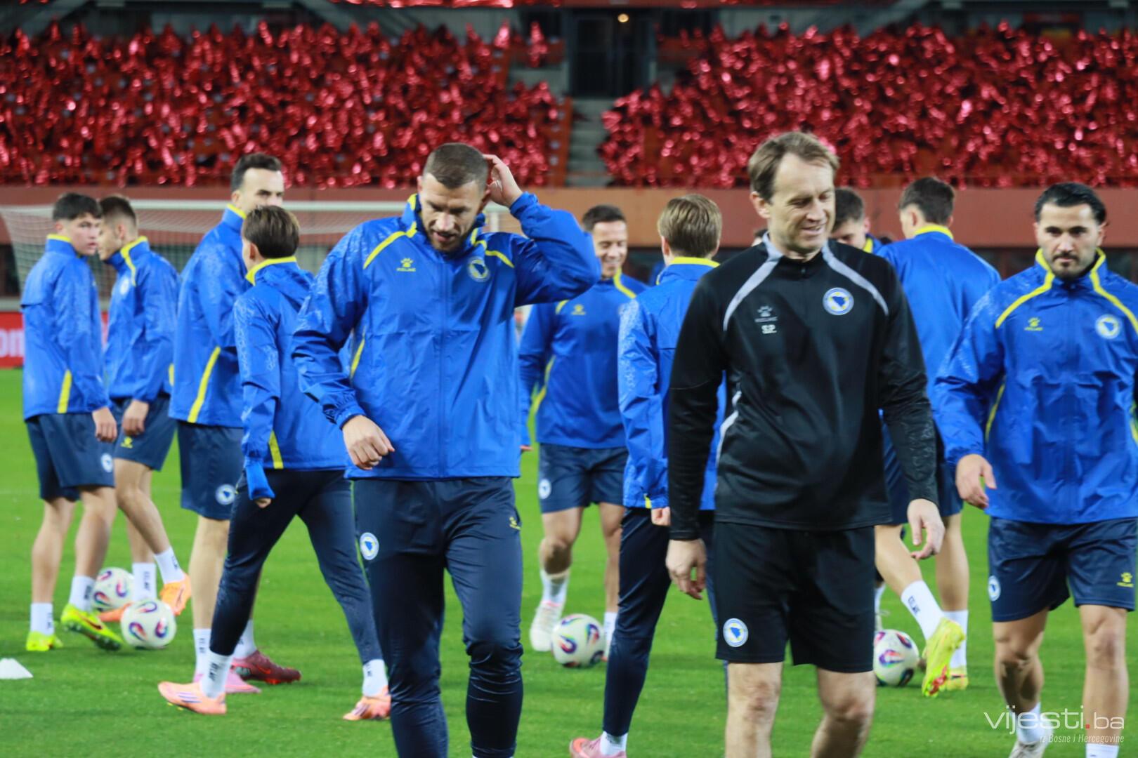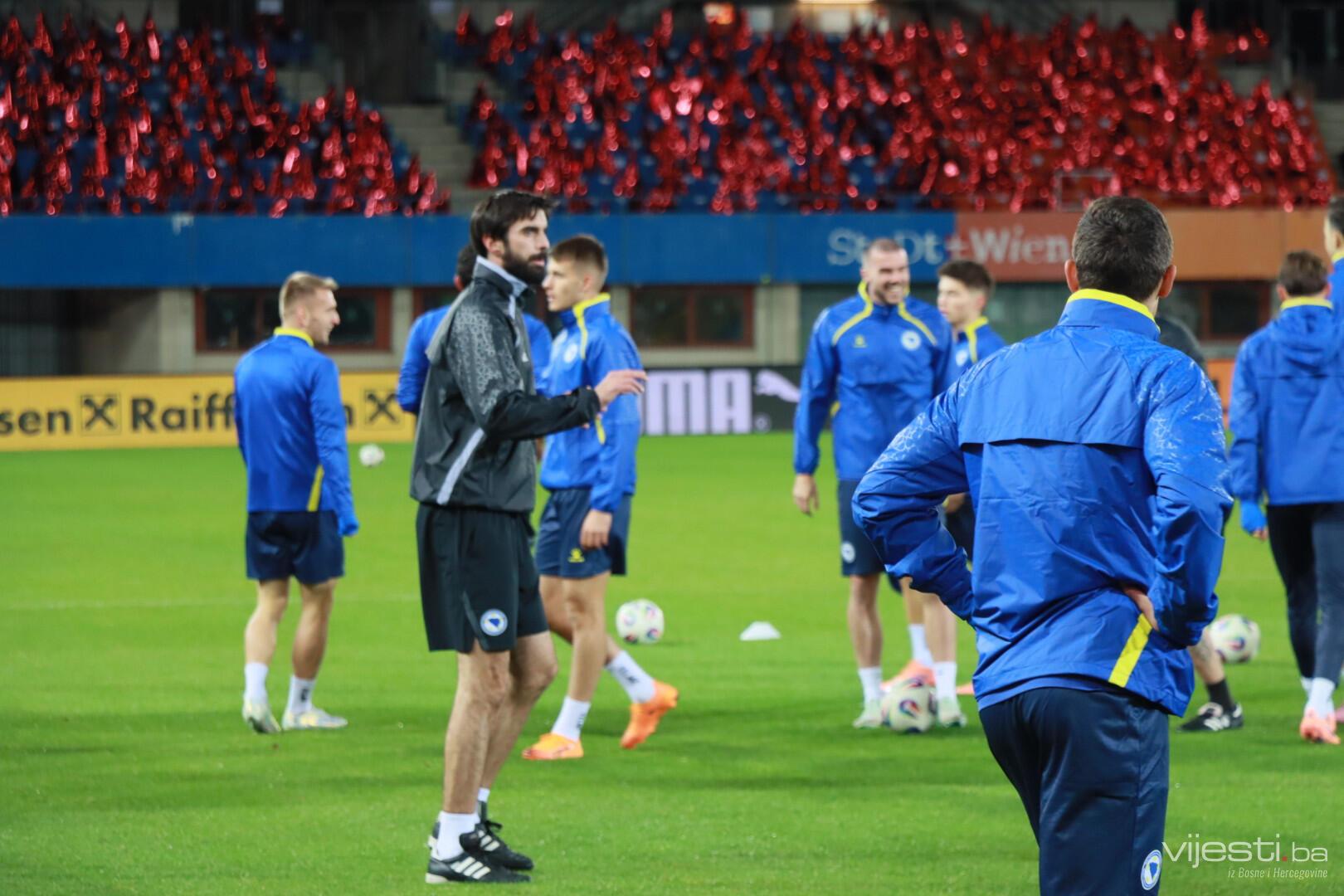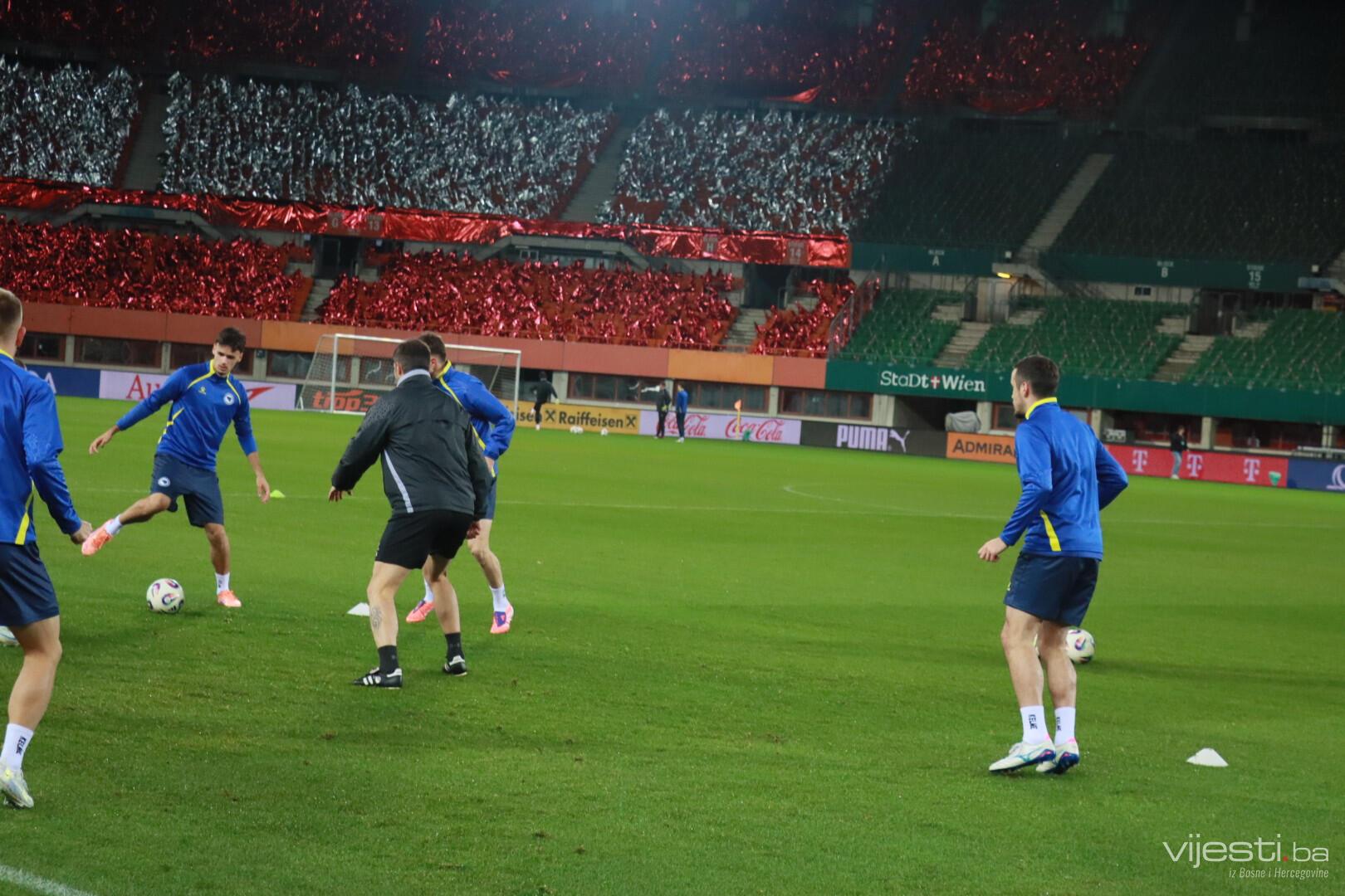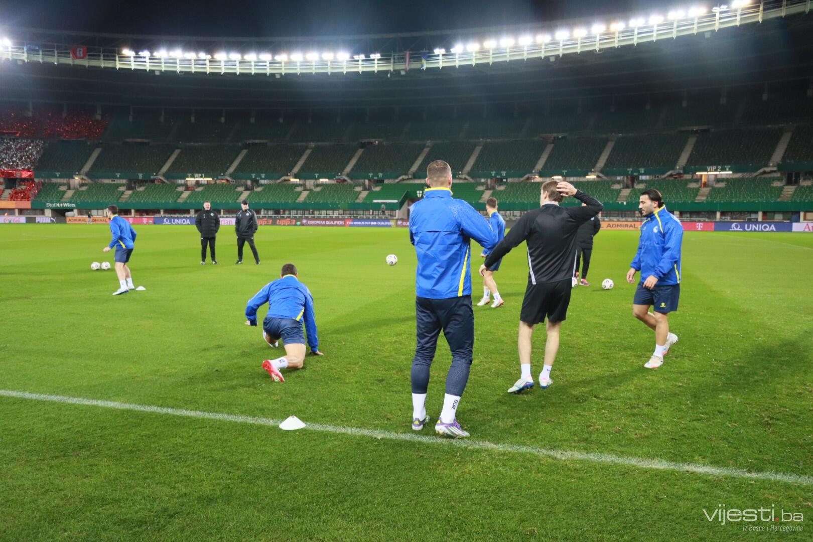Reprezentativci Bosne i Hercegovine odradili su večeras posljednji službeni trening na Ernst Happel stadionu u Beču uoči utakmice kvalifikacija za Svjetsko prvenstvo s Austrijom, javio je reporter Vijesti.ba sa stadiona "Ernst Happel".