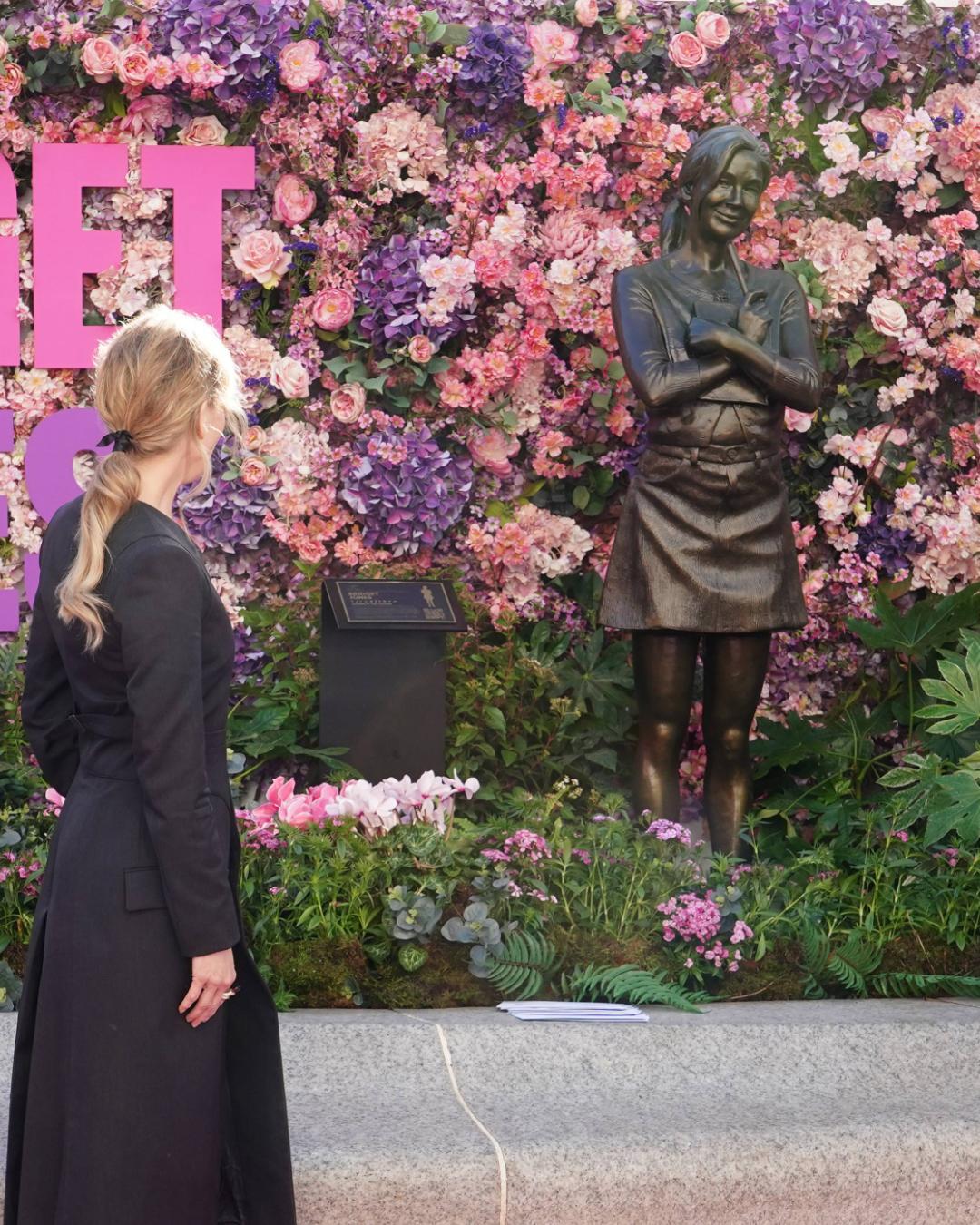 Dobitnica Oscara Renee Zellweger, koja je glumila naslovni lik u sva četiri filma o Bridget Jones, prisustvovala je danas otkrivanju kipa kojim se obilježava 25 godina od izlaska prvog filma "Dnevnik Bridget Jones".