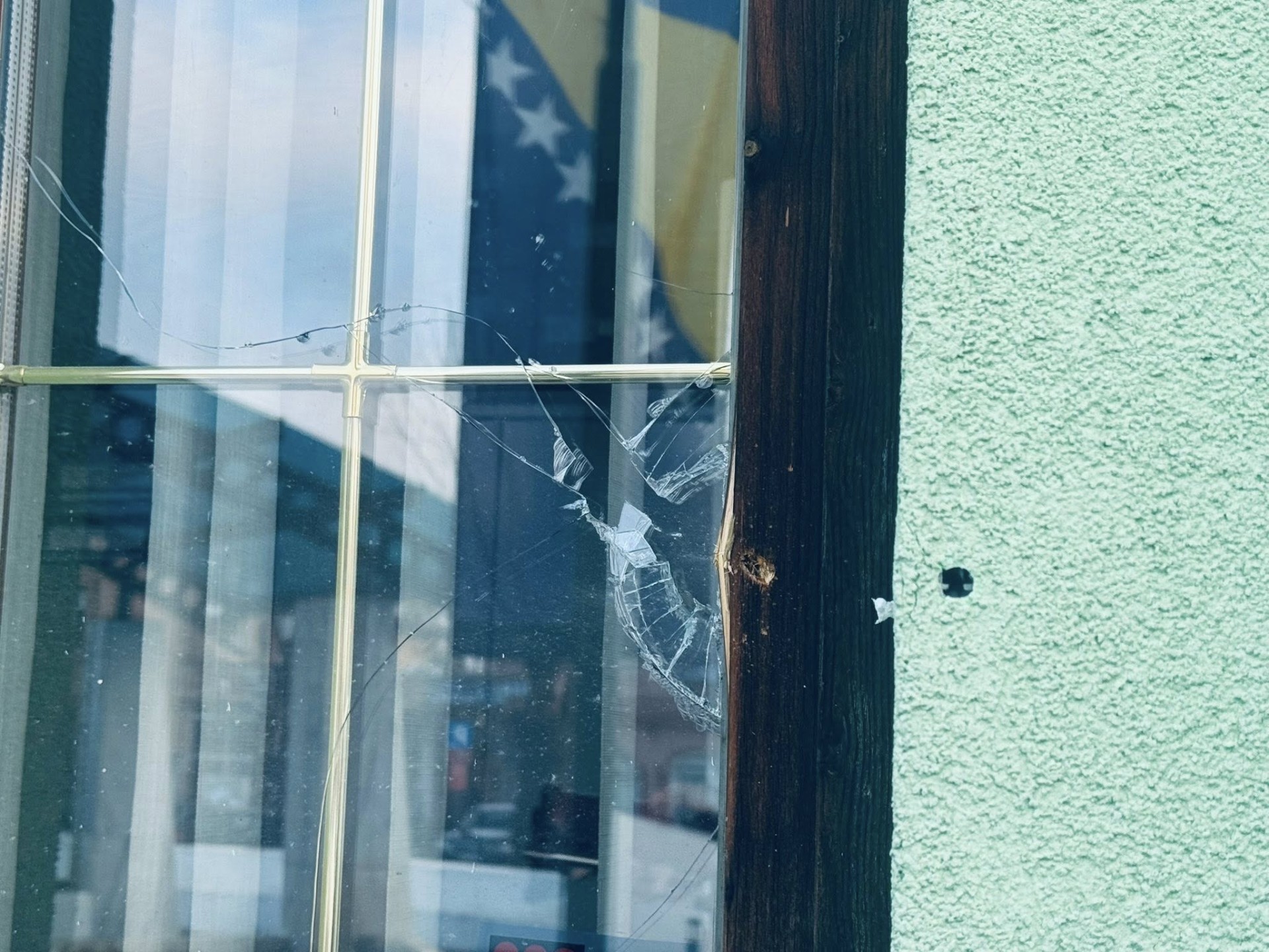 U razmjeni vatre između pljačkaša i policije nekoliko metaka završilo u fasadi Osnovne škole Kalesija, a jedan u prozoru zgrade Općine, javlja Infoplus.