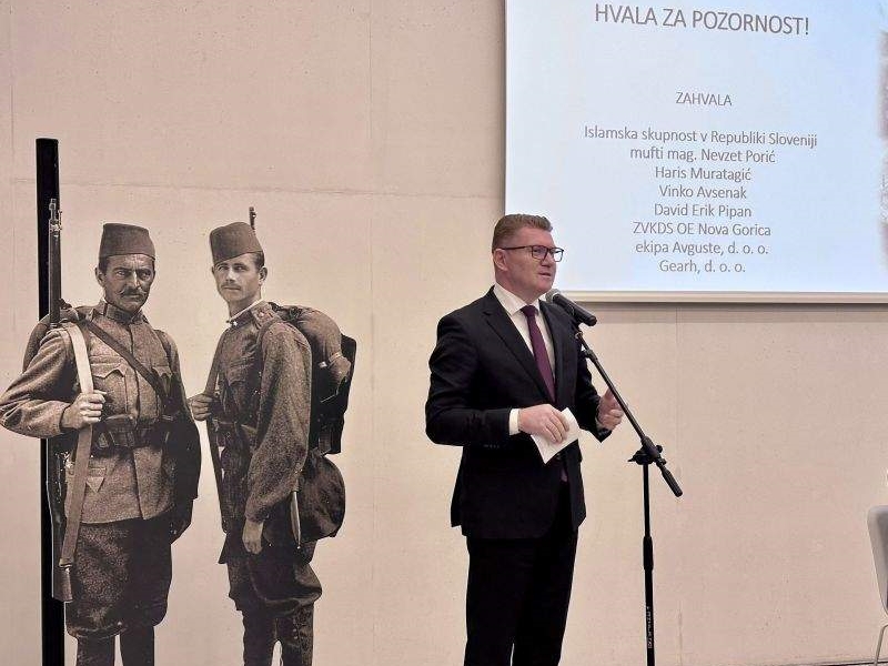 U govoru je naglasio velike napore koje Islamska zajednica u Republici Sloveniji ulaže u očuvanje sjećanja na džamiju u Logu pod Mangartom.