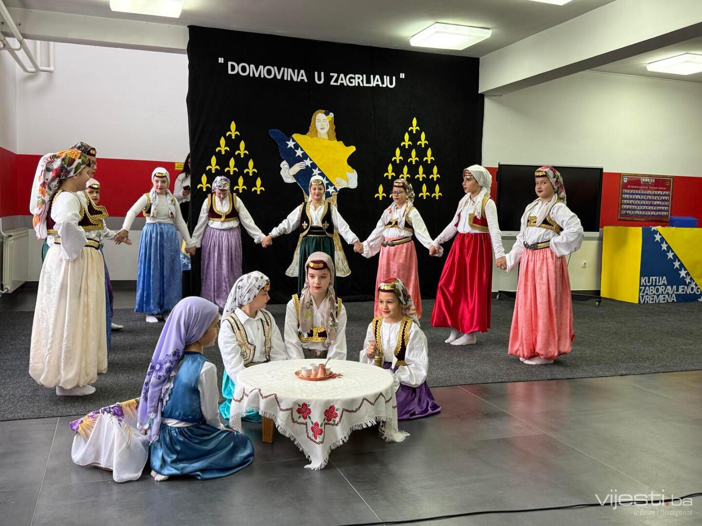 Publika je uživala u izvedbi pjesme „Lijepo je doć’ u svoju čaršiju“, kao i u kratkoj predstavi „Kutija zaboravljenog vremena“, u kojoj su učenici govorili o Povelji Kulina bana, zastavi Bosne i Hercegovine, sevdalinki, ali i o časnoj borbi i pripadnosti narodu koji je kroz historiju bio stavljen na najveće kušnje, a nikada nije pokleknuo.