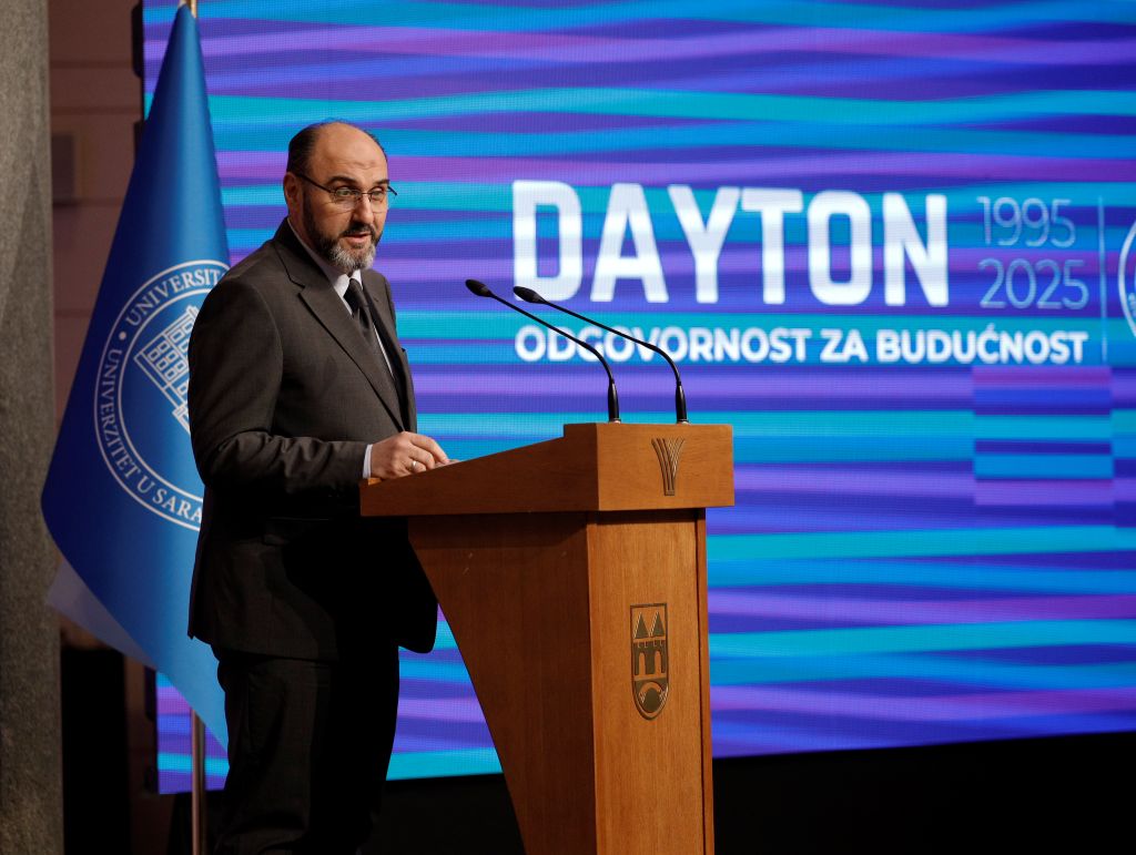 - Danas, trideset godina nakon potpisivanja Dejtonskog mirovnog sporazuma, kao naučna i akademska zajednica imamo obavezu da otvoreno, odgovorno i bez zadrške govorimo o njegovim posljedicama, granicama i značenju za budućnost Bosne i Hercegovine. Vrijeme je da kao društvo prerastemo Dejtonski mirovni sporazum i da kroz demokratske reforme, uz puno poštovanje međunarodnog prava i sudskih presuda, kreiramo novi bosanskohercegovački ustavni okvir - istakao je prof. dr. Tarik Zaimović, rektor Univerziteta u Sarajevu.