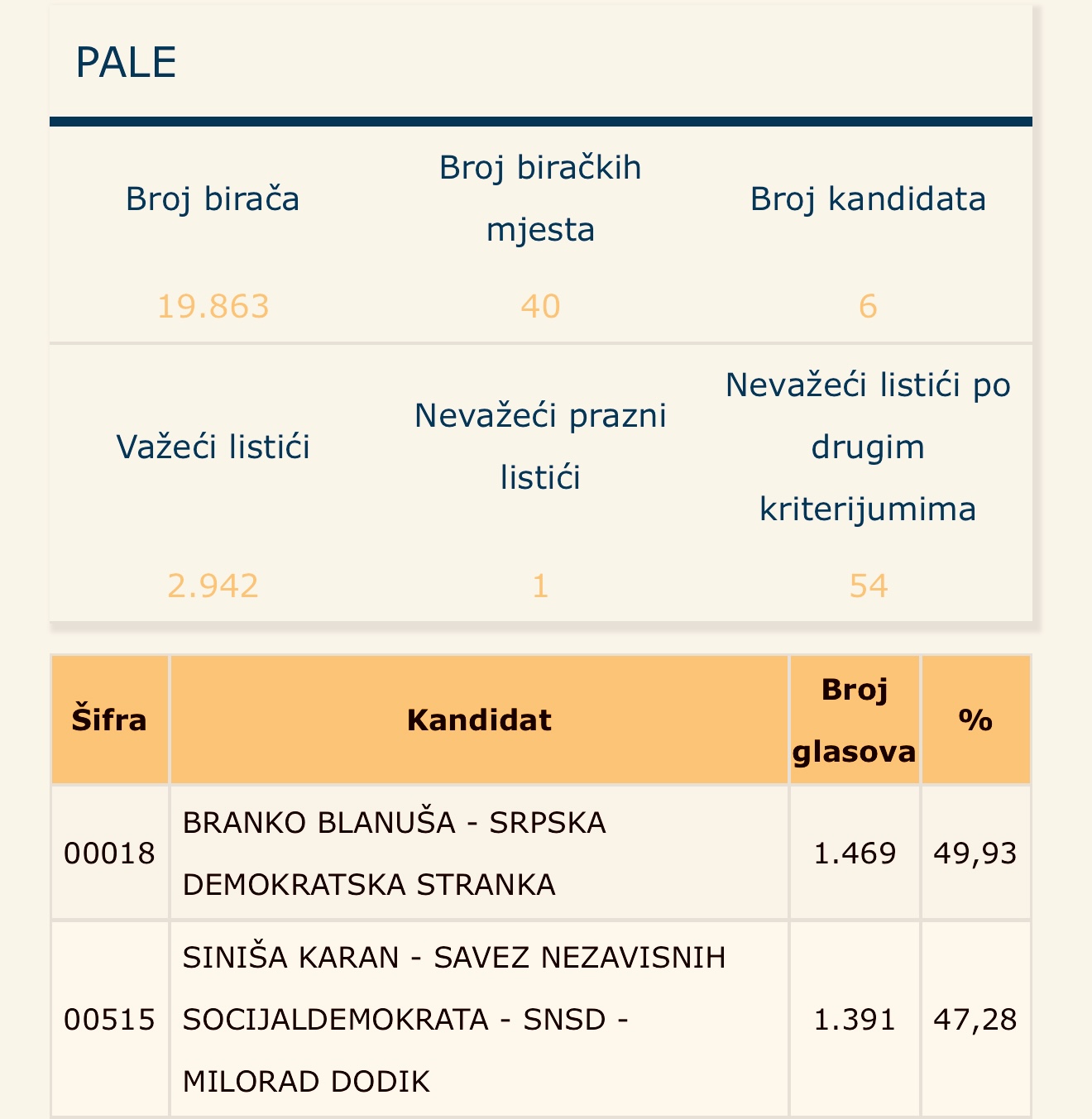 U drugom najvećem gradu u entitetu RS, Bijeljini, razlika je oko 3 hiljada glasova. Blanuša je u Biljeljini dobio 20.655, dok je Karan dobio 17.781.