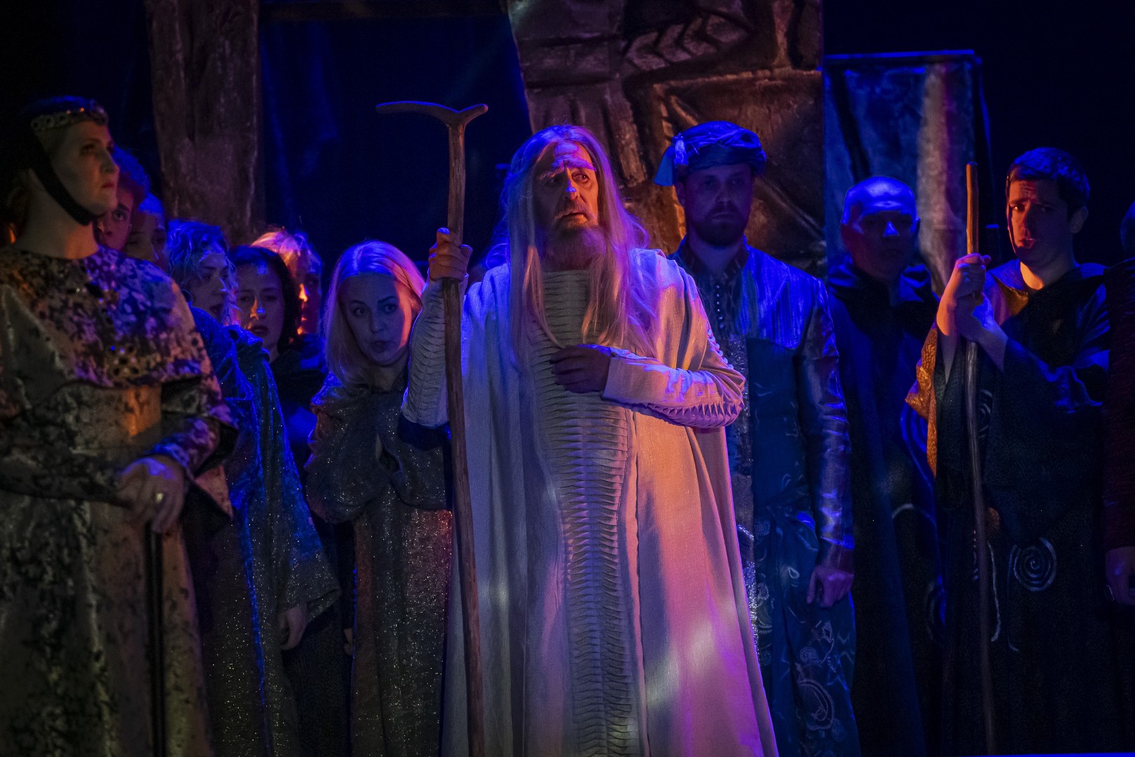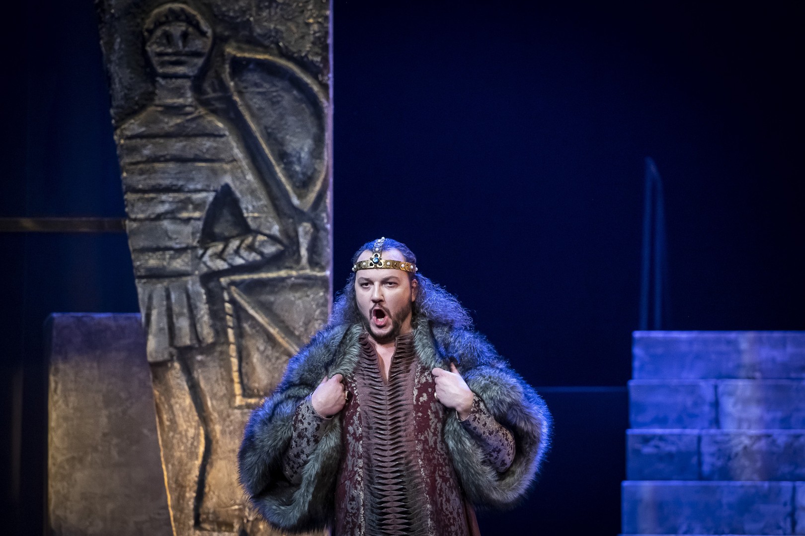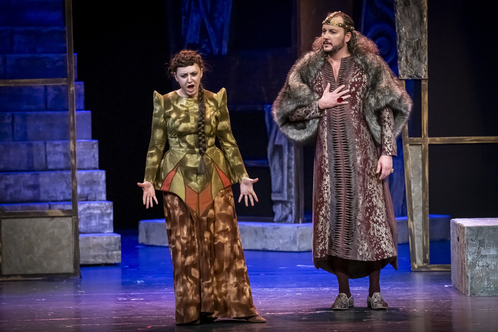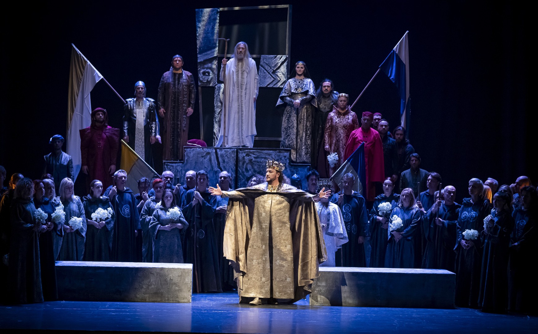 Naslovnu ulogu Tvrtka iznijet će solista Opere NPS Ivan Šarić; Grubaču, Tvrtkovu nevjenčanu suprugu igra Jana Cvetković/Adelisa Saračević; u ulozi kneginje Jelene, Tvrtkove majku slušat ćemo Katarinu Kikić Marić; dok će Doroteju, kraljicu bosansku utjeloviti Hana Salihović. Amir Saračević igra ulogu Vuka Tvrtkovog brata; dok će Ileš Bečei utjeloviti lik Vuka Dabišića, plemića, zavjerenika protiv Tvrtka. Solista Opere Erol Ramadanović igra lik Hotjana, Tvrtkovog savjetnika. Did bosanski, poglavar Crkve bosanske je Ivica Šarić; Vlatko Hranić, bosanski vitez i velikaš Denis Isaković.