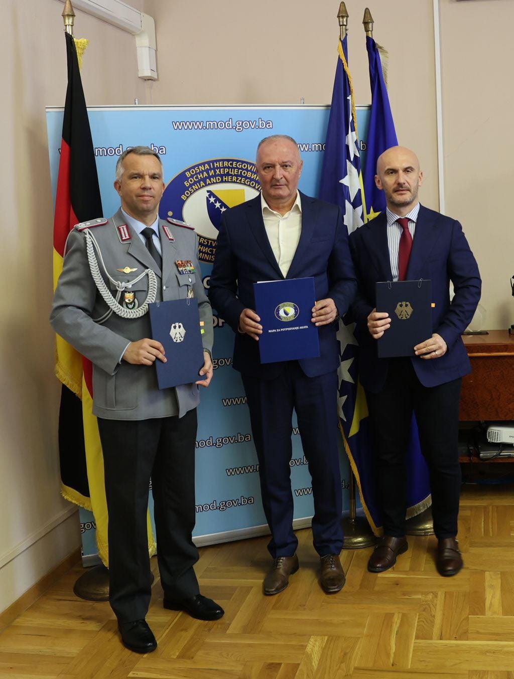 Ministar odbrane Bosne i Hercegovine Zukan Helez danas je potpisao Tehnički sporazum između Ministarstva odbrane BiH i Ministarstva odbrane Savezne Republike Njemačke o donaciji pet vozila za prevoz opasnih materija, u vrijednosti od 1.450.000 eura.