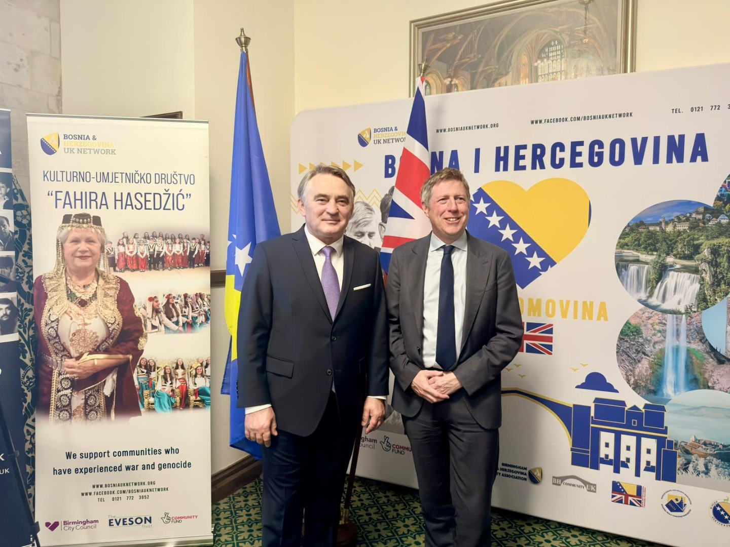 Domaćin prijema bila je Međuparlamentarna grupa za Bosnu i Hercegovinu (APPG for BiH), koju su predvodili predsjedavajuća Alicia Kearns i BiH–UK Network.