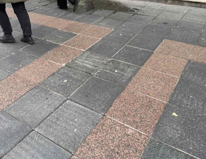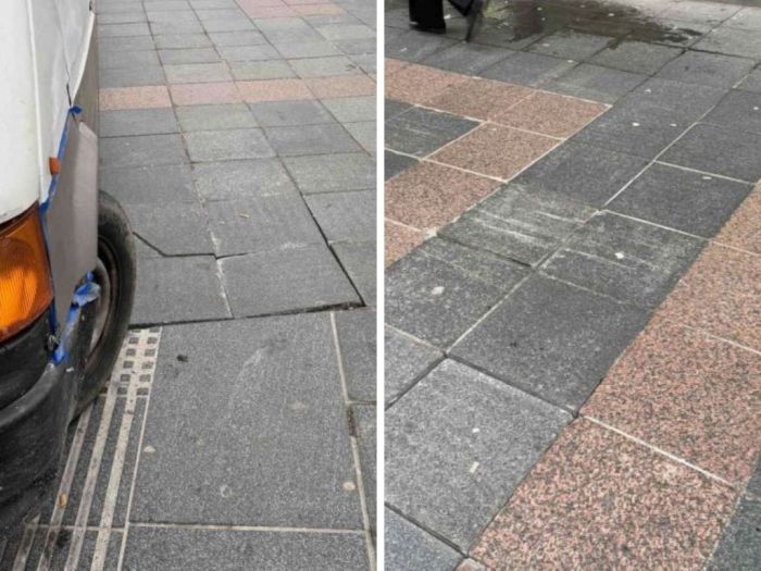 U ulici Ferhadija ploče su ponovo oštećene, ulegnute ili polomljene.