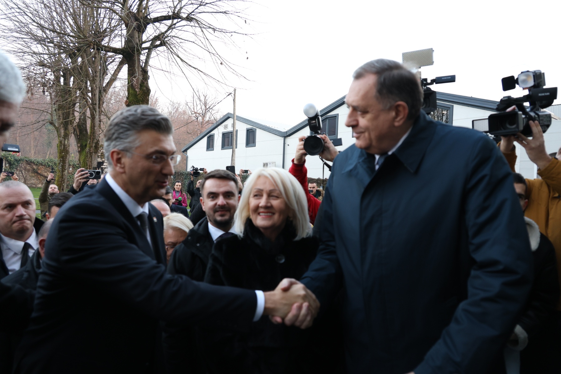 Plenkovića su dočekali v. d. predsjednika RS-a Ana Trišić Babić, premijer RS i potpredsjednik, ali i lider SNSD-a Milorad Dodik.