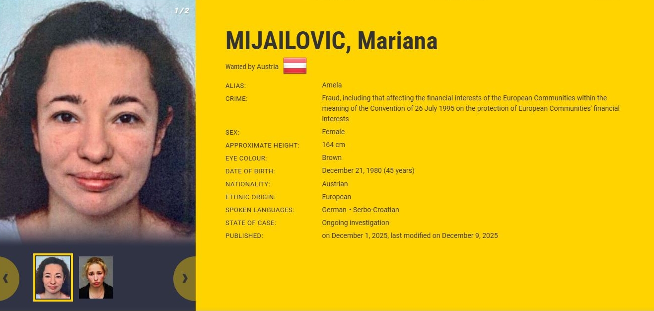Među novouvrštenim bjeguncima nalazi se i 44-godišnja Mariana Mijailović, državljanka Austrije srpskog porijekla. Europol navodi da je godinama obmanjivala žene uvjeravajući ih da su pod "teškim kletvama", koristeći više lažnih identiteta, među kojima i imena Amela i Fatima. Nudila im je navodne rituale "čišćenja" kako bi, kako je tvrdila, spriječila bolest, nesreću ili smrt.