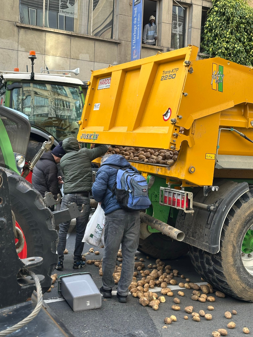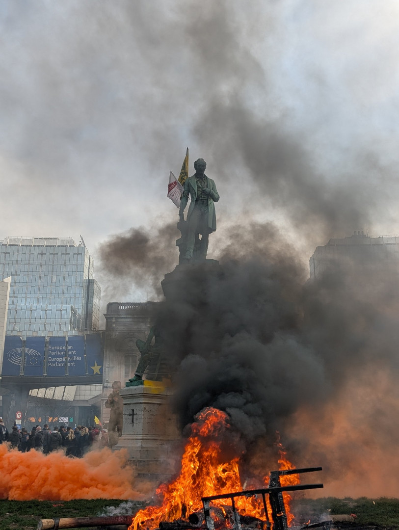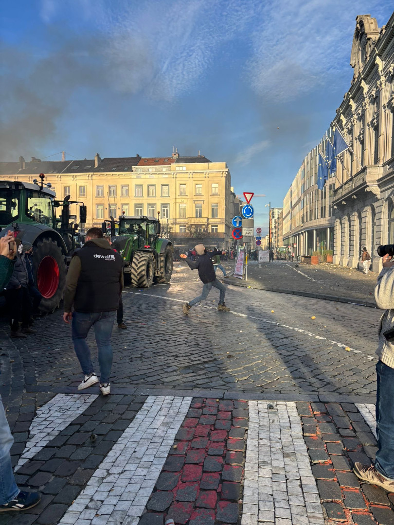 Tenzije su naglo porasle kada je protest stigao do Evropskog parlamenta. Demonstranti su u početku bacali krompir i repu na policajce, koji su odgovorili vodenim topovima. Situacija se potom dodatno pogoršala, a demonstranti su bacali kamenje, dimne bombe i vatromet na zgrade Parlamenta. Viđeni su i traktori kako čupaju drveće na trgu.