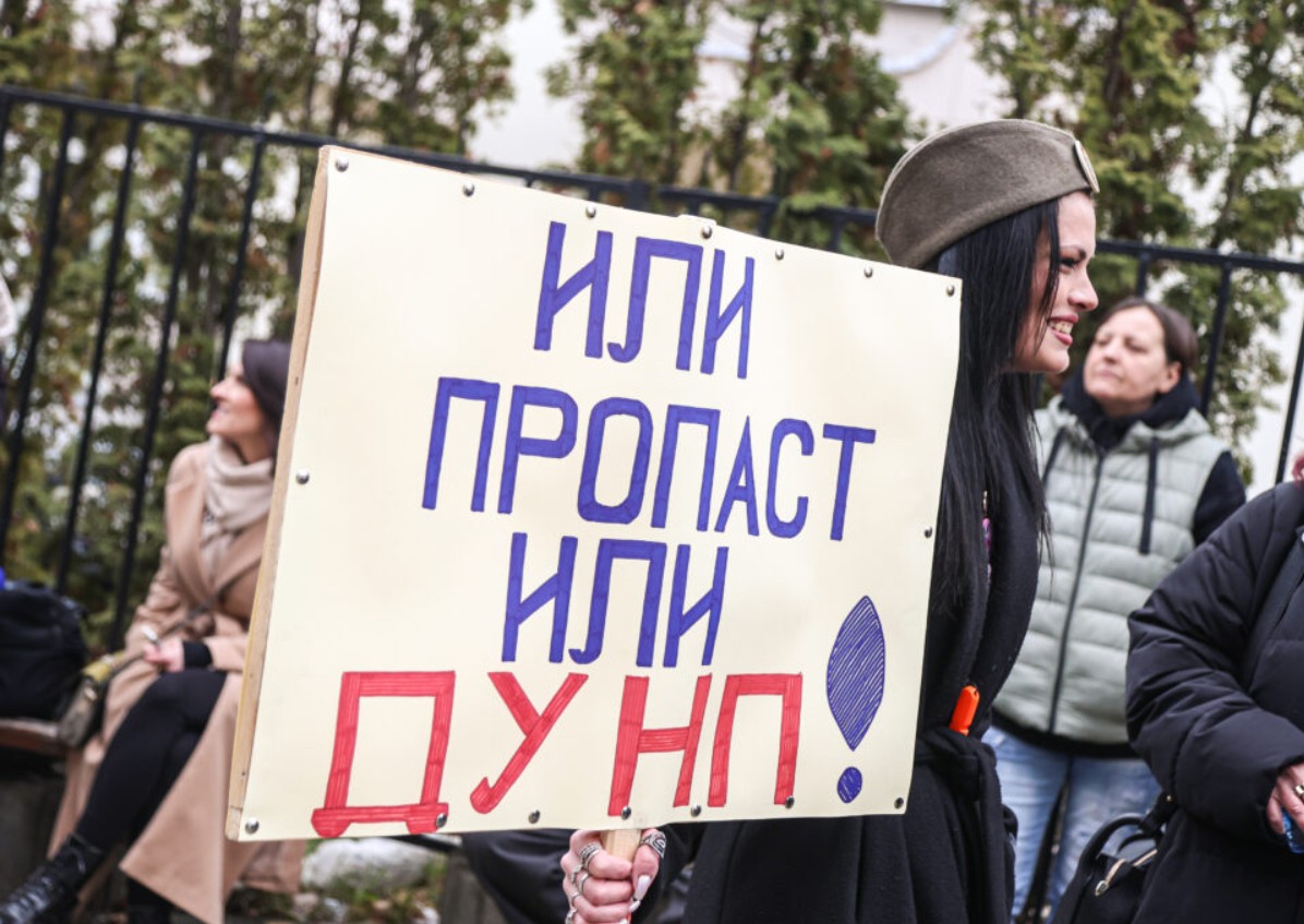 Studentkinja DUNP-a, u suzama, obratila se okupljenima ispred Univerziteta.