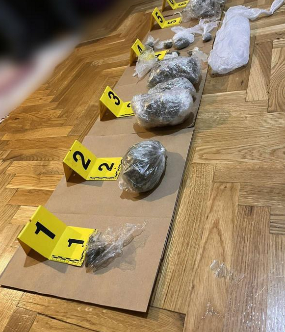 Tokom izvršenih pretresa pronađeno je više PVC pakovanja materije koja asocira na opojnu drogu marihuanu, ukupne količine oko 450 grama, kao i ručna bomba, digitalna vaga i drugi predmeti od značaja za istragu.