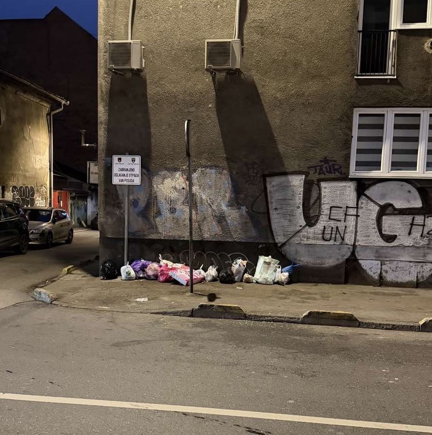 Pored jasno istaknutog znaka na kojem piše „Zabranjeno odlaganje otpada van posuda“, razbacano smeće svjedoči o zabrinjavajućem nivou nekulture i neodgovornosti dijela građana Sarajeva.