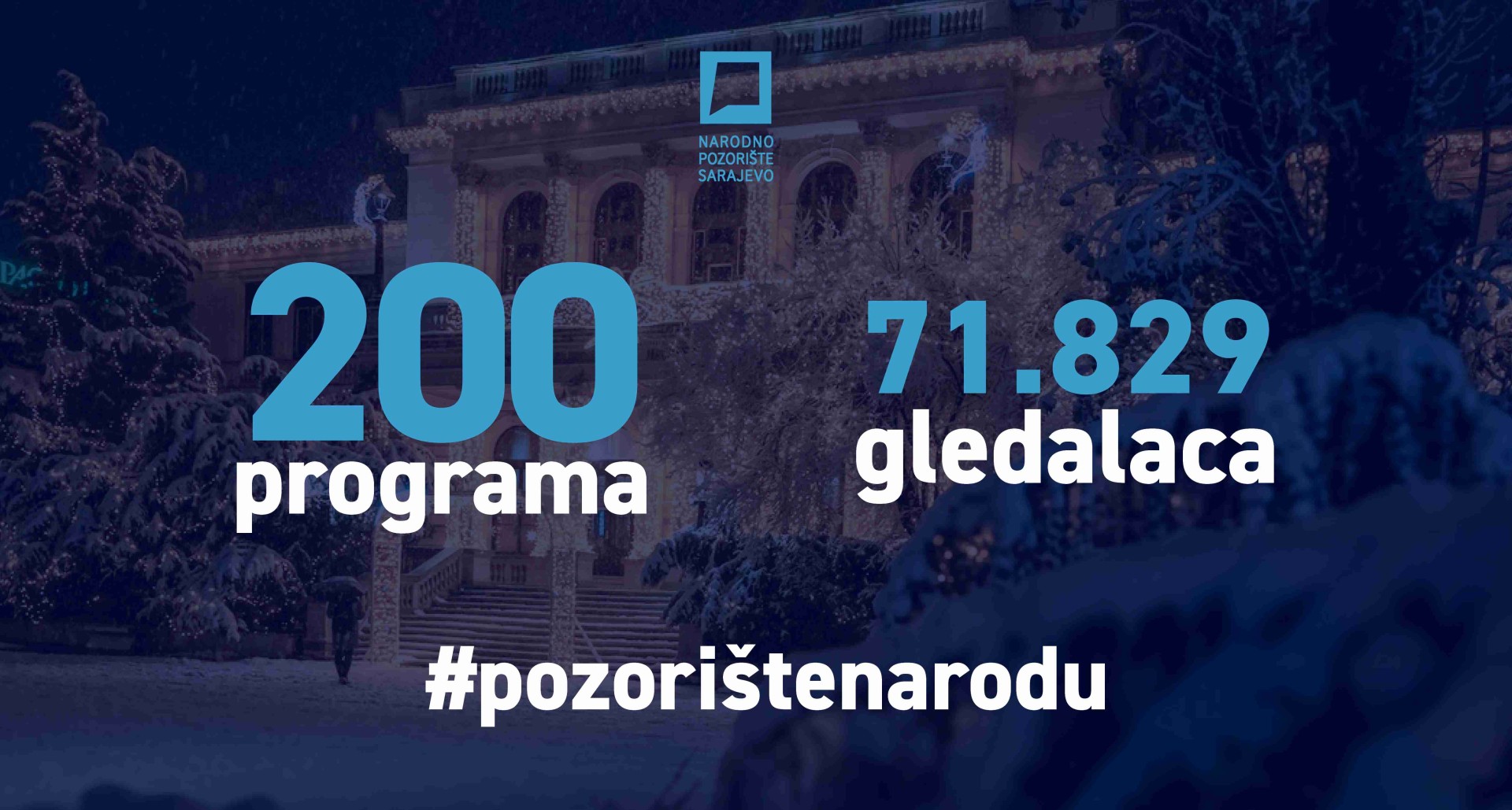 Programe Narodnog pozorišta Sarajevo posjetilo je ukupno 71.829 gledalaca, a na specijalnim programima „Kultura na ulice!“ i „Pozorište na kućnoj adresi“ producirano je 40 programa, koje je posjetilo 32.083 gledalaca ljubitelja umjetnosti.