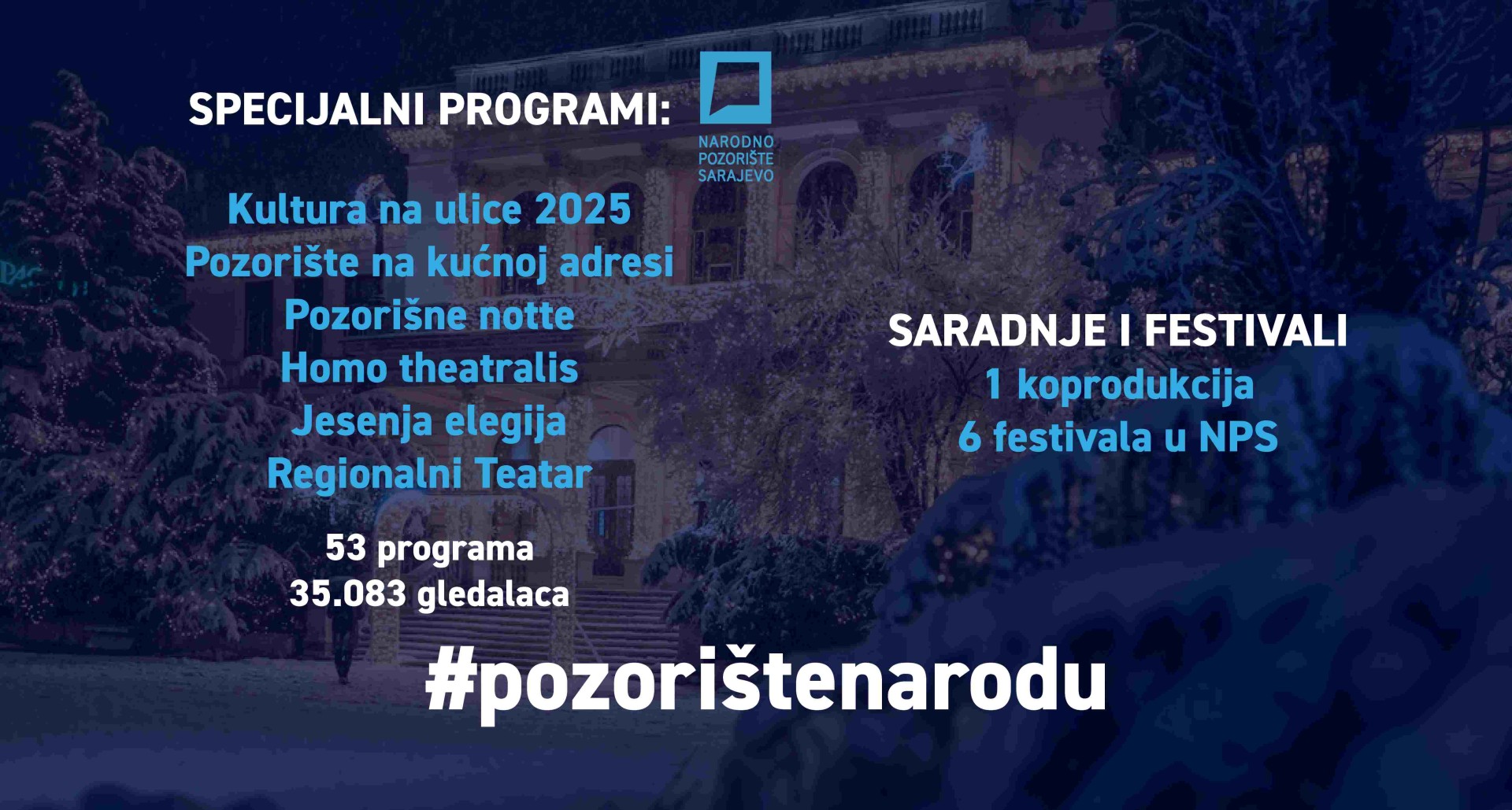 Publika je mogla uživati u specijalnim programima Narodnog pozorišta Sarajevo „Kultura na ulice 2025!“, „Pozorište na kućnoj adresi“, „Pozorišne notte“, „Homo theatralis“, „Jesenja elegija“, „Regionalni Teatar“ te „Kaleidoskop teatra kroz objektiv mladih“.