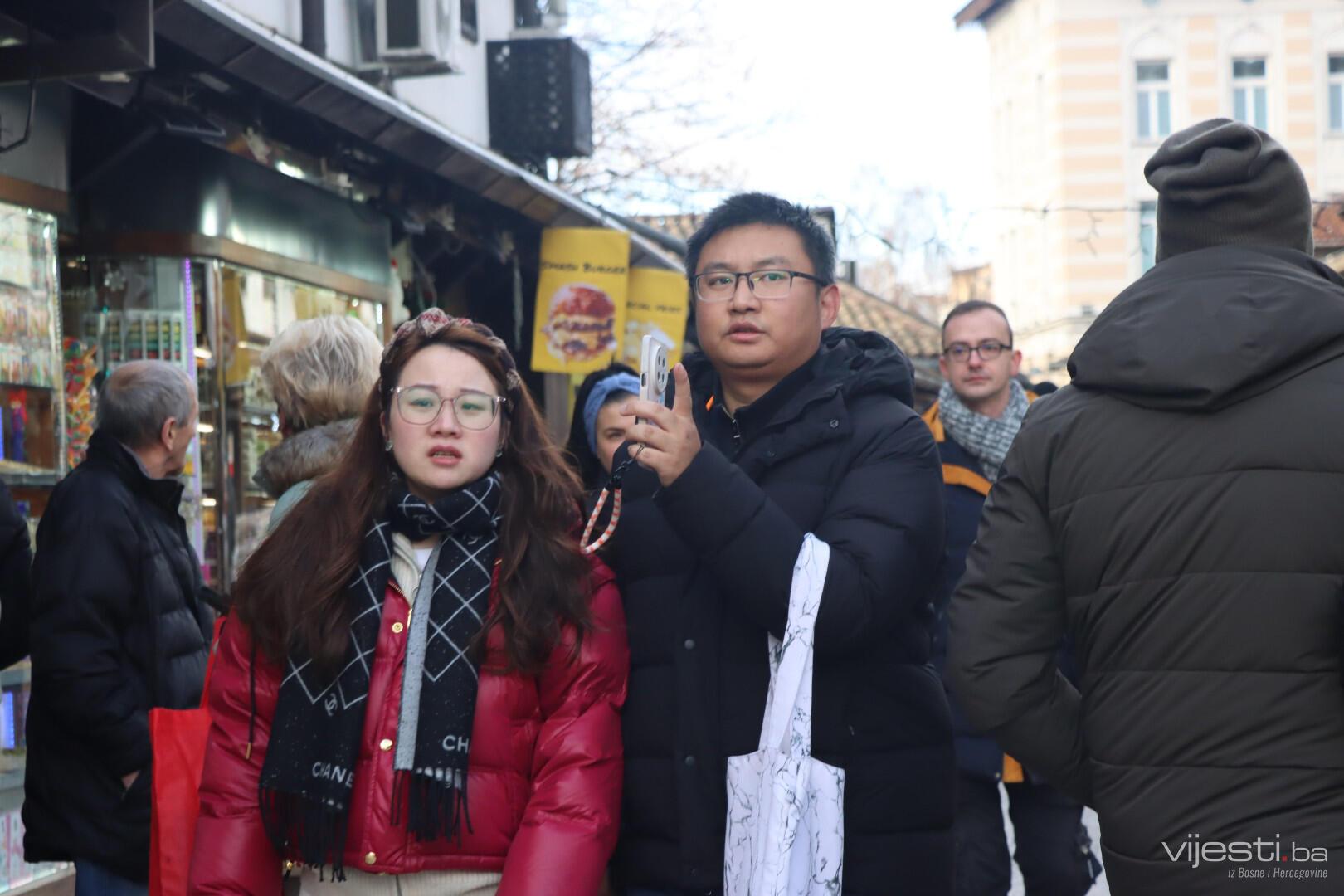 Među brojnim posjetiocima je i turistkinja iz Kine, koja, iako neće dočekati prvi januar u Sarajevu, ne krije oduševljenje gradom.