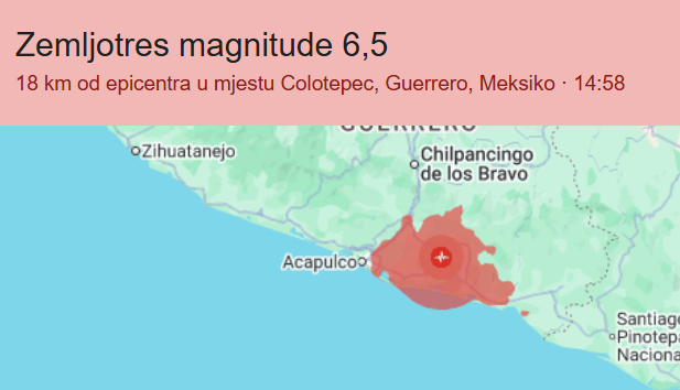 Epicentar zemljotresa bio je u južnoj saveznoj državi Gerero, na obali Tihog okeana.