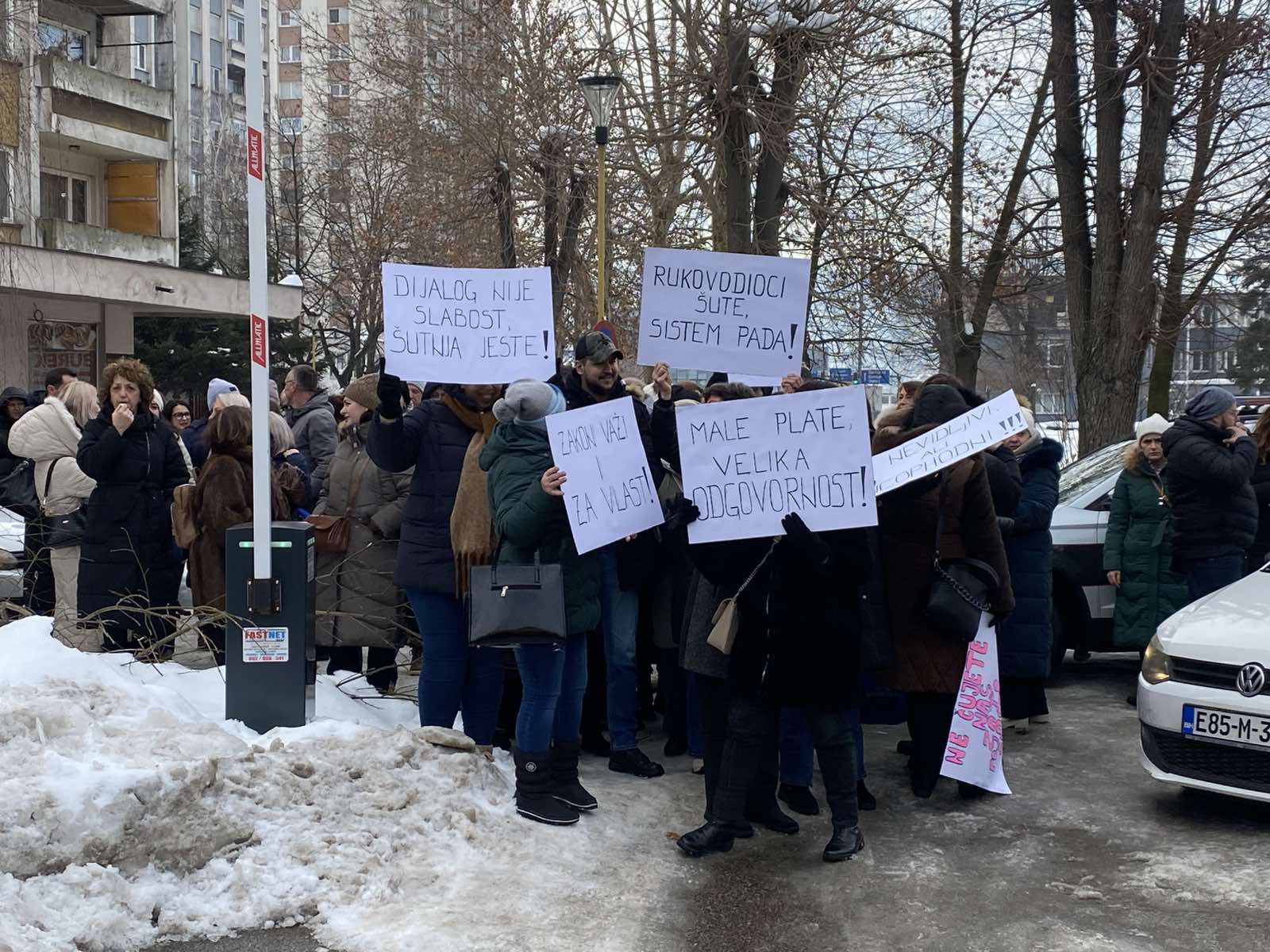“Mi smo u štrajku i ostajemo i dalje, sve dok Vlada TK ne ispuni naše zahtjeve. Naša Plata je 1280 KM i to spram posla koji radimo nije ni izbliza dovoljno. Zbog štrajka su mnogi sudovi zatrpani predmetima i dosta se kasni. Vlada mora znati da smo mi motor pravosuđa, bez nas nema rješavanja predmeta u rokovima”, kazao je Almir Huremović, sudski izvršilac u Opcinskom sudu Tuzla.