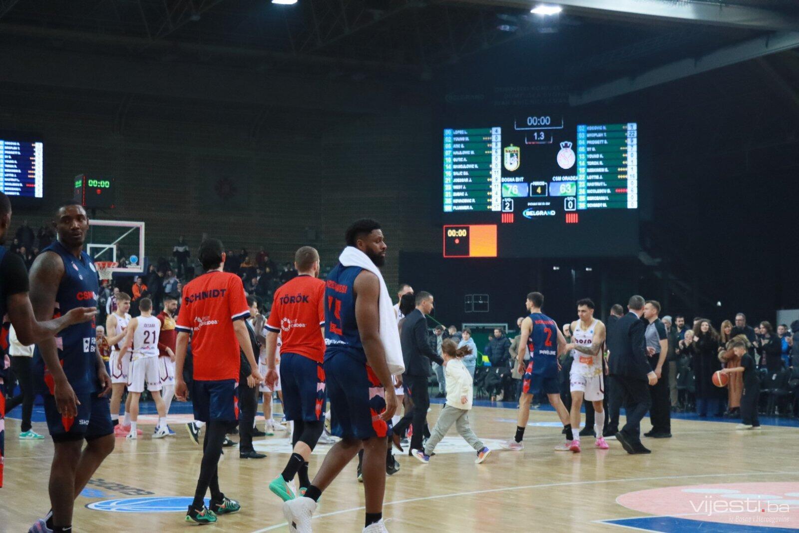 Košarkaši Bosne BH Telecom upisali su veliku pobjedu protiv rumunske Oradee u prepunoj Zetri rezultatom 76:63 i dva kola prije kraja druge faze osigurali plasman u četvrtfinale FIBA Evropa kupa.