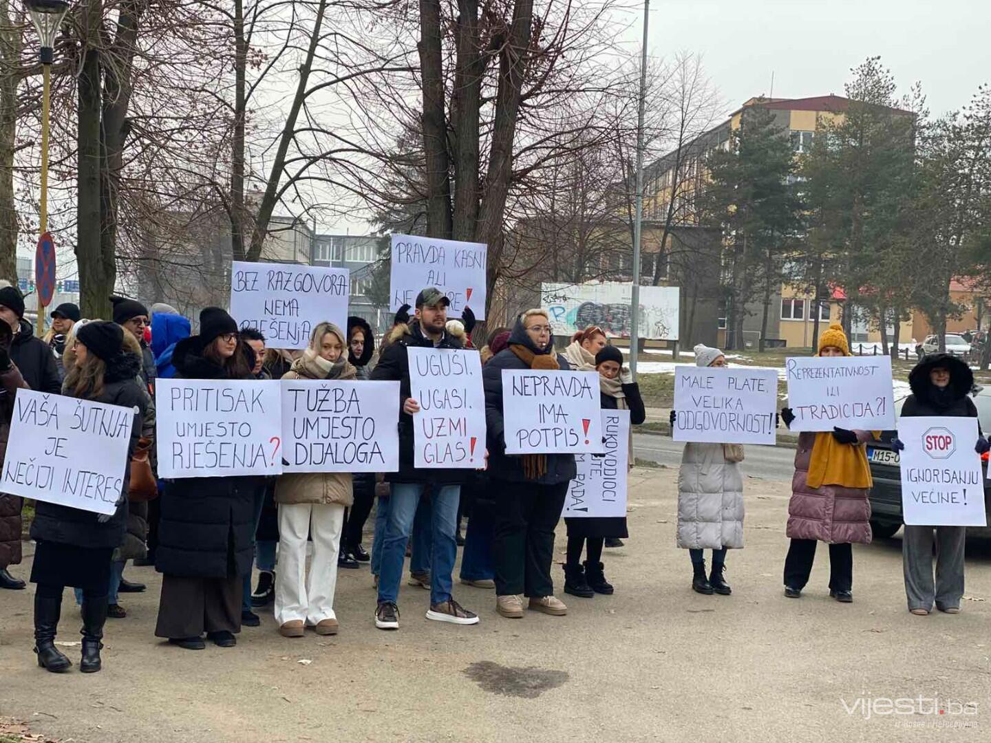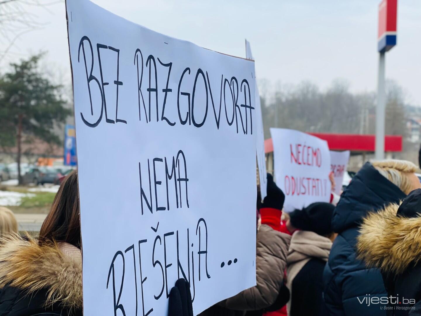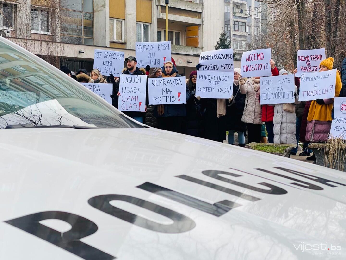 Okupljeni traže razgovor sa predstavnicima Vlade, povećanje plate glavni je zahtjev.