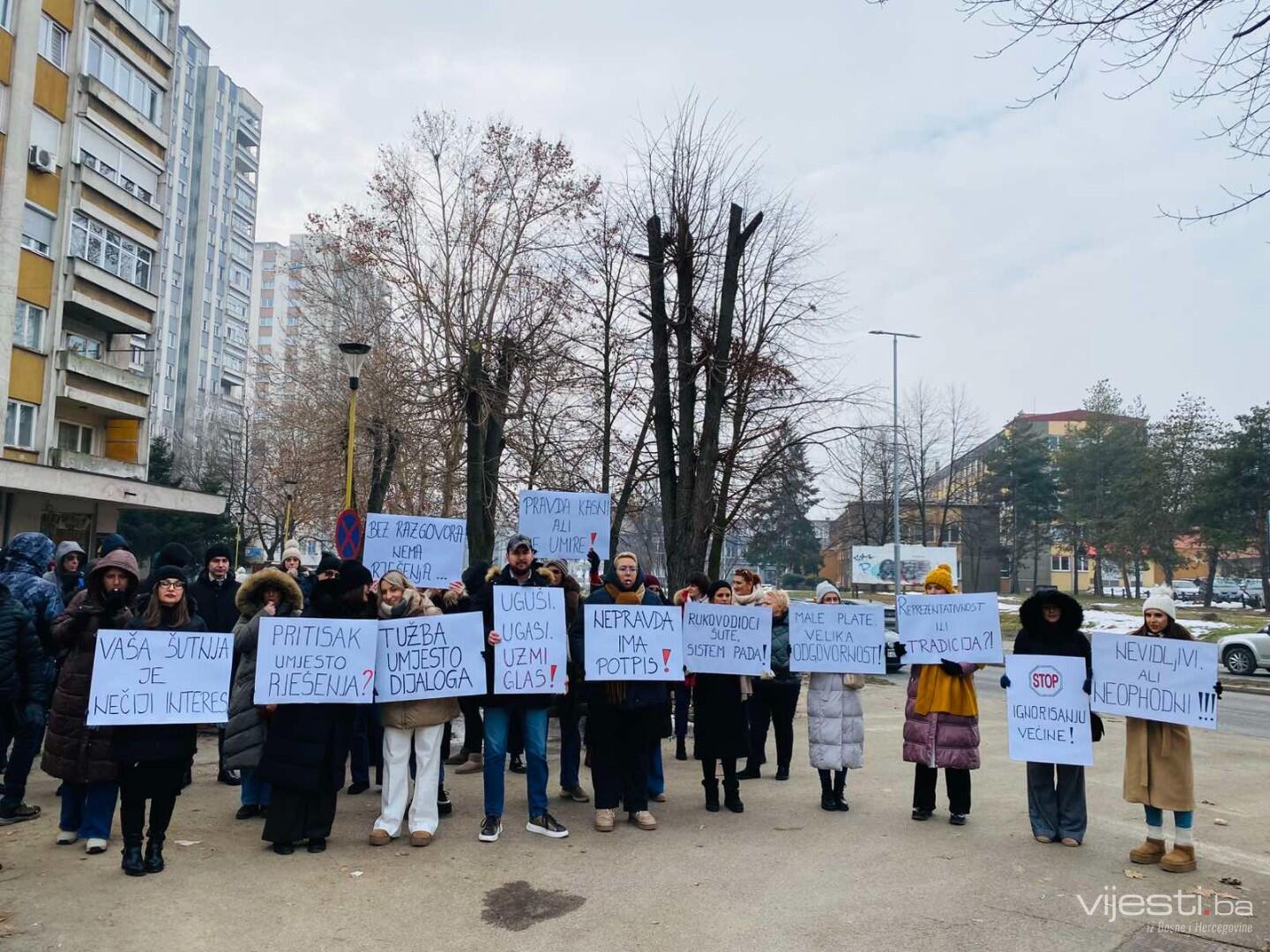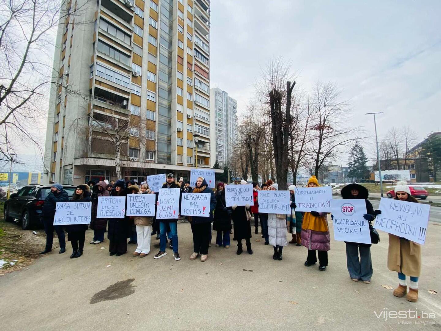 Skoro dva mjeseca nakon početka štrajka administrativnog osoblja u pravosuđu Tuzlanskog kantona, a pomaka u dijalogu sa Vladom TK još nema. Zbog toga su uposlenici u pravosudnim institucijama u TK i danas održali protest ispred zgrade Vlade Tuzlanskog kantona.