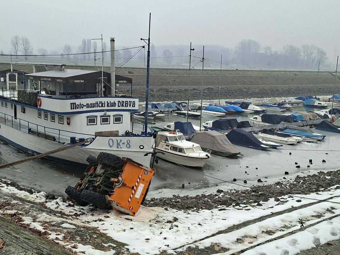 Jutro u petak nije prošlo bez incidenata. Djelatnik Unikoma je, uslijed ledene kiše i smrznutih površina, bio na radnom zadatku posipanja osječke promenade solju.