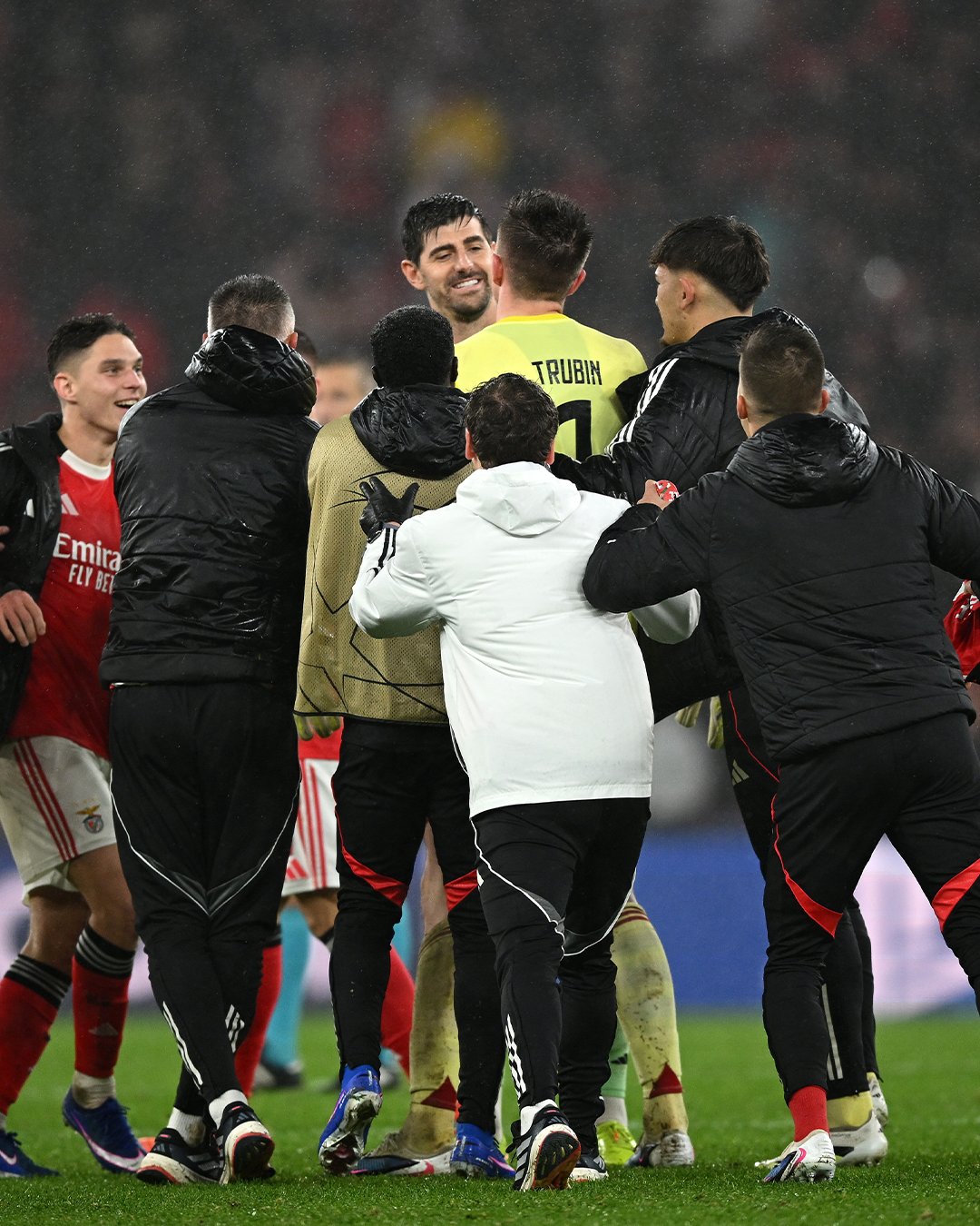 Golman Real Madrida Thibaut Courtois bio je među onima koji su nakon utakmice prišli da čestitaju Trubinu. Belgijski reprezentativac se nasmijao i zagrlio Benficinog junaka.