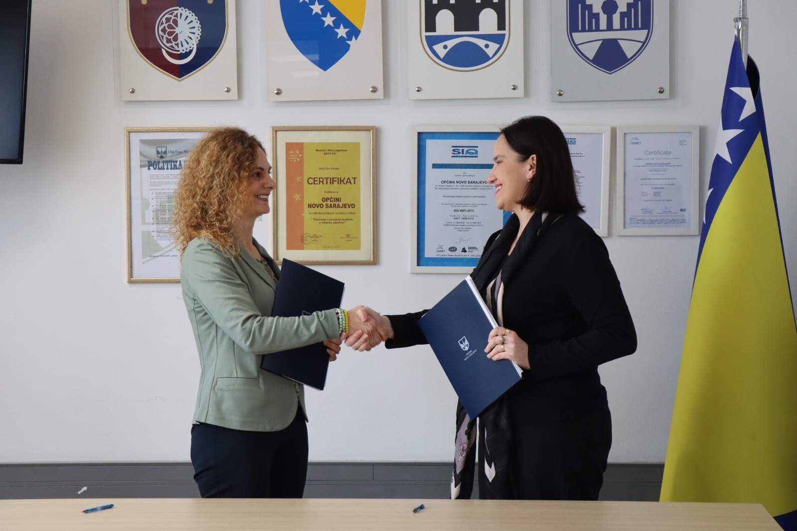Načelnica Općine Novo Sarajevo Benjamina Karić i direktorica firme "Mibral" d.o.o. Sarajevo Maja Bralović Smith potpisale su Ugovor o izvođenju radova na vanjskom uređenju Parka 'Trg Heroja'.