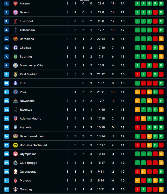 Ekipa Mikela Artete ostvarila je maksimalan učinak sa osam pobjeda iz isto toliko utakmica, skupila 24 boda i zauzela prvo mjesto na tabeli, čime je jasno pokazala ambicije u nastavku takmičenja.