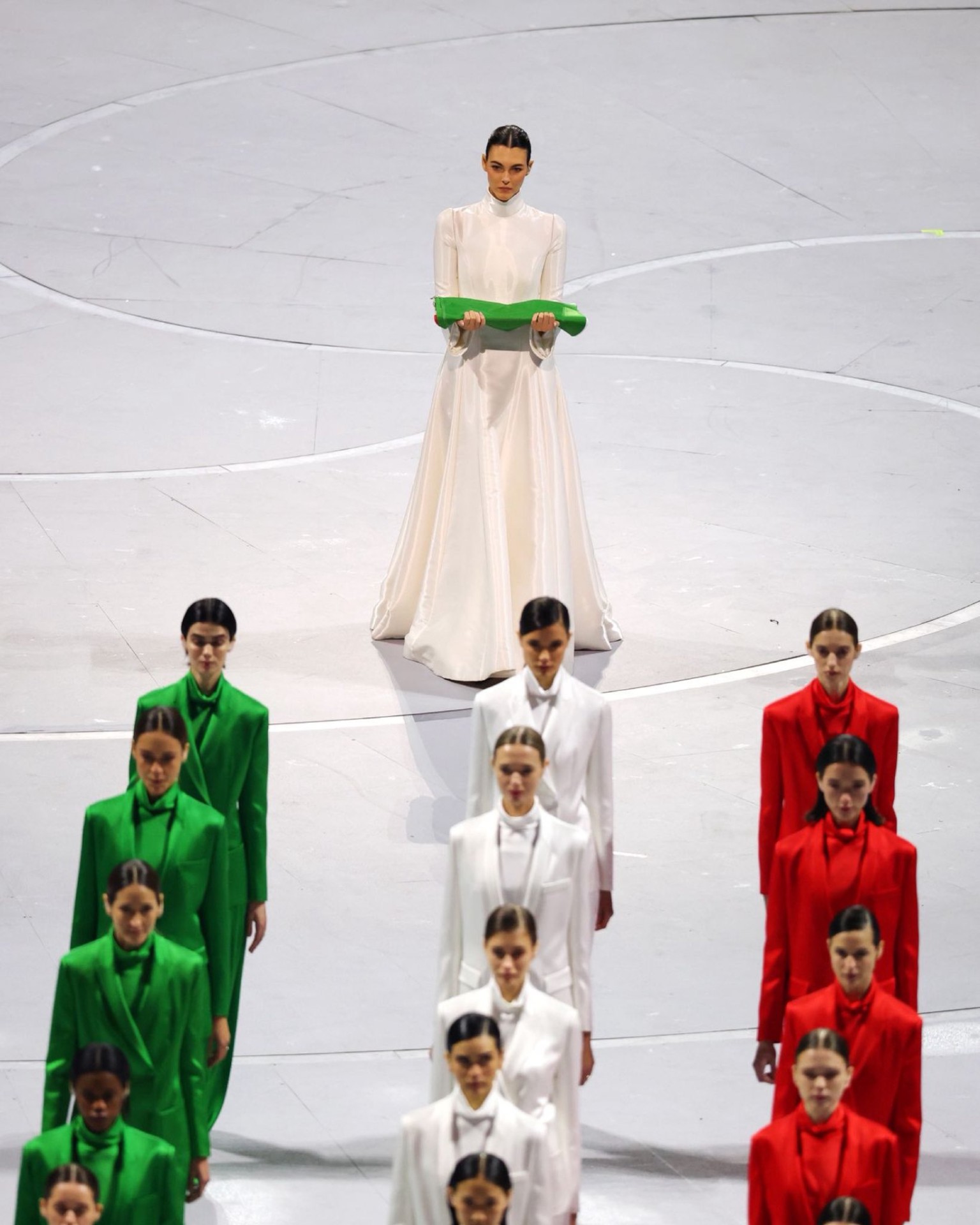 During the opening ceremony of the Milano Cortina 2026 Winter Olympic and Paralympic Games in Milan, Italy, Vittoria Ceretti—the latest face of the Giorgio Armani Spring/Summer 2026 campaign—appeared in a custom white #GiorgioArmaniPrivé gown, carrying the flag to the honor… pic.twitter.com/QI4IOhht2j